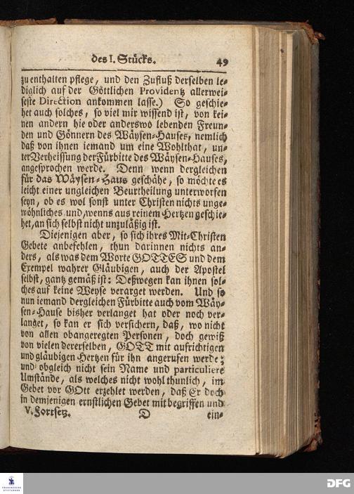 Segens=volle Fußstapfen des noch lebenden und waltenden liebrei=│chen und getreuen GOttes, Zur Beschämung des Unglaubens und Stärckung des Glaubens, entdecket durch eine wahrhafte und umständliche Nachricht von dem Wäysen=Hause und übrigen Anstalten zu Glaucha vor Halle; Welche Im Jahr 1701. zum Druck befördert, ietzo aber zum dritten mal ediret, und bis auf gegenwärtiges Jahr fortgesetzet von August Hermann Francken, S.Theol.Prof.und Past. HALLE, in Verlegung des Wäysen=Hauses, MDCCIX.