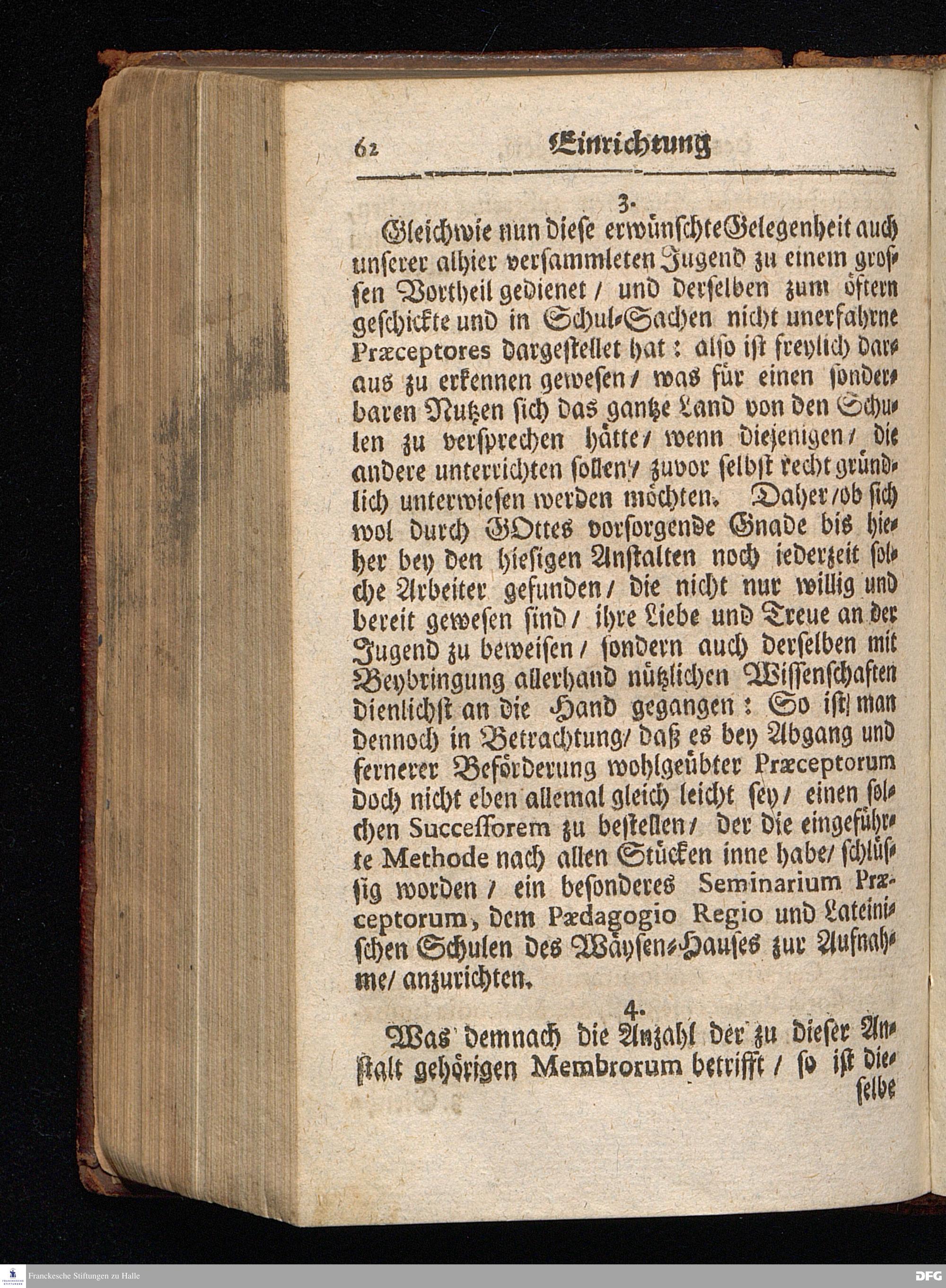 Segens=volle Fußstapfen des noch lebenden und waltenden liebrei=│chen und getreuen GOttes, Zur Beschämung des Unglaubens und Stärckung des Glaubens, entdecket durch eine wahrhafte und umständliche Nachricht von dem Wäysen=Hause und übrigen Anstalten zu Glaucha vor Halle; Welche Im Jahr 1701. zum Druck befördert, ietzo aber zum dritten mal ediret, und bis auf gegenwärtiges Jahr fortgesetzet von August Hermann Francken, S.Theol.Prof.und Past. HALLE, in Verlegung des Wäysen=Hauses, MDCCIX.