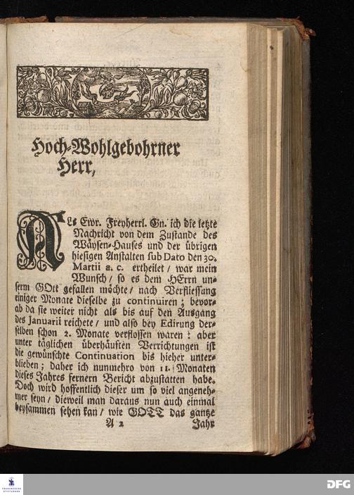 Segens=volle Fußstapfen des noch lebenden und waltenden liebrei=│chen und getreuen GOttes, Zur Beschämung des Unglaubens und Stärckung des Glaubens, entdecket durch eine wahrhafte und umständliche Nachricht von dem Wäysen=Hause und übrigen Anstalten zu Glaucha vor Halle; Welche Im Jahr 1701. zum Druck befördert, ietzo aber zum dritten mal ediret, und bis auf gegenwärtiges Jahr fortgesetzet von August Hermann Francken, S.Theol.Prof.und Past. HALLE, in Verlegung des Wäysen=Hauses, MDCCIX.