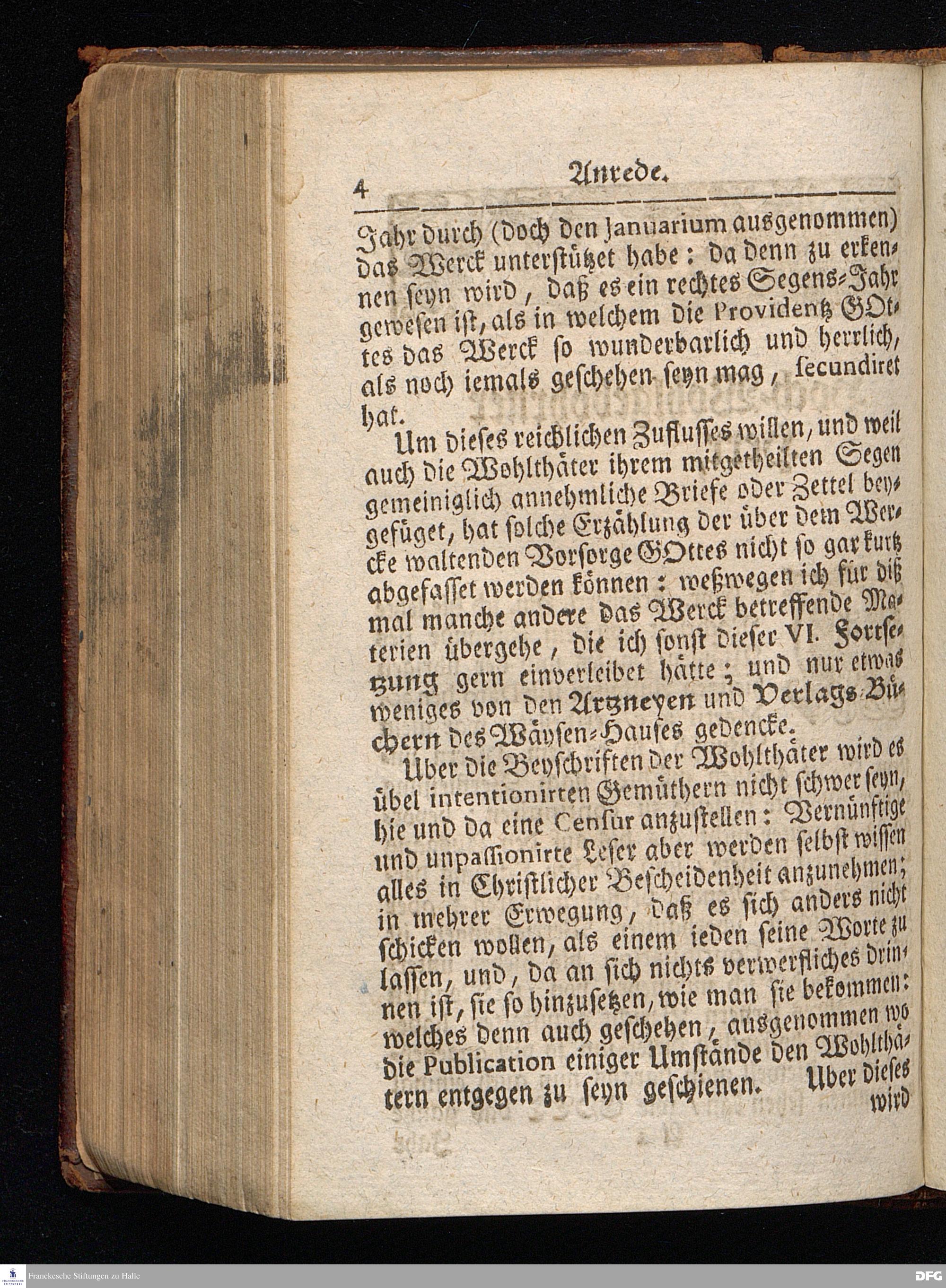 Segens=volle Fußstapfen des noch lebenden und waltenden liebrei=│chen und getreuen GOttes, Zur Beschämung des Unglaubens und Stärckung des Glaubens, entdecket durch eine wahrhafte und umständliche Nachricht von dem Wäysen=Hause und übrigen Anstalten zu Glaucha vor Halle; Welche Im Jahr 1701. zum Druck befördert, ietzo aber zum dritten mal ediret, und bis auf gegenwärtiges Jahr fortgesetzet von August Hermann Francken, S.Theol.Prof.und Past. HALLE, in Verlegung des Wäysen=Hauses, MDCCIX.