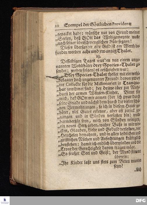Segens=volle Fußstapfen des noch lebenden und waltenden liebrei=│chen und getreuen GOttes, Zur Beschämung des Unglaubens und Stärckung des Glaubens, entdecket durch eine wahrhafte und umständliche Nachricht von dem Wäysen=Hause und übrigen Anstalten zu Glaucha vor Halle; Welche Im Jahr 1701. zum Druck befördert, ietzo aber zum dritten mal ediret, und bis auf gegenwärtiges Jahr fortgesetzet von August Hermann Francken, S.Theol.Prof.und Past. HALLE, in Verlegung des Wäysen=Hauses, MDCCIX.