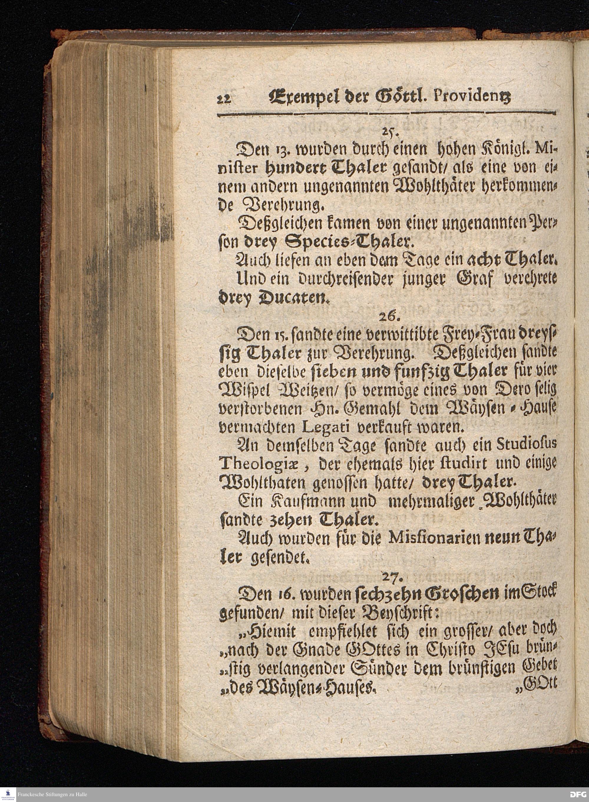 Segens=volle Fußstapfen des noch lebenden und waltenden liebrei=│chen und getreuen GOttes, Zur Beschämung des Unglaubens und Stärckung des Glaubens, entdecket durch eine wahrhafte und umständliche Nachricht von dem Wäysen=Hause und übrigen Anstalten zu Glaucha vor Halle; Welche Im Jahr 1701. zum Druck befördert, ietzo aber zum dritten mal ediret, und bis auf gegenwärtiges Jahr fortgesetzet von August Hermann Francken, S.Theol.Prof.und Past. HALLE, in Verlegung des Wäysen=Hauses, MDCCIX.