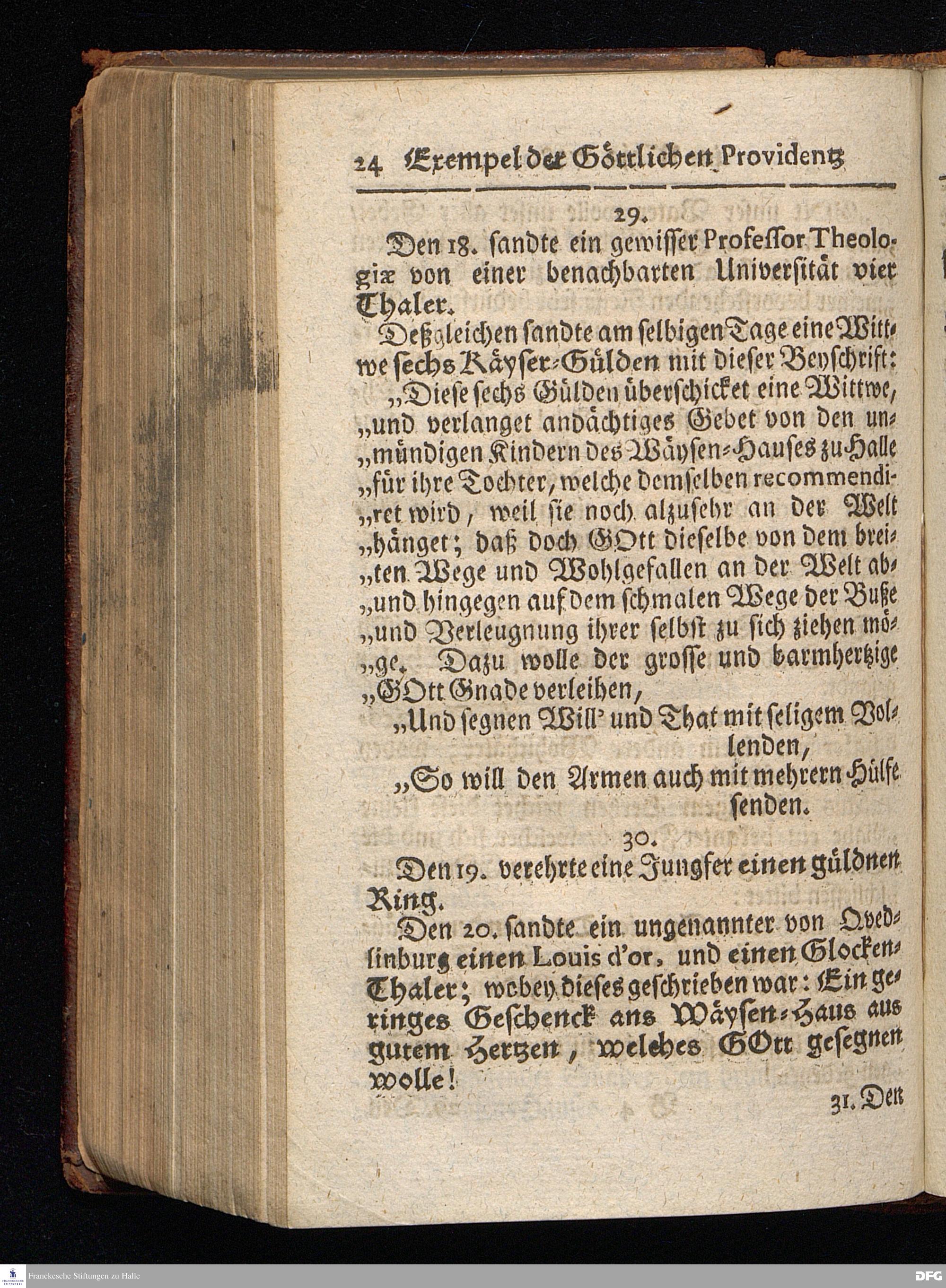Segens=volle Fußstapfen des noch lebenden und waltenden liebrei=│chen und getreuen GOttes, Zur Beschämung des Unglaubens und Stärckung des Glaubens, entdecket durch eine wahrhafte und umständliche Nachricht von dem Wäysen=Hause und übrigen Anstalten zu Glaucha vor Halle; Welche Im Jahr 1701. zum Druck befördert, ietzo aber zum dritten mal ediret, und bis auf gegenwärtiges Jahr fortgesetzet von August Hermann Francken, S.Theol.Prof.und Past. HALLE, in Verlegung des Wäysen=Hauses, MDCCIX.