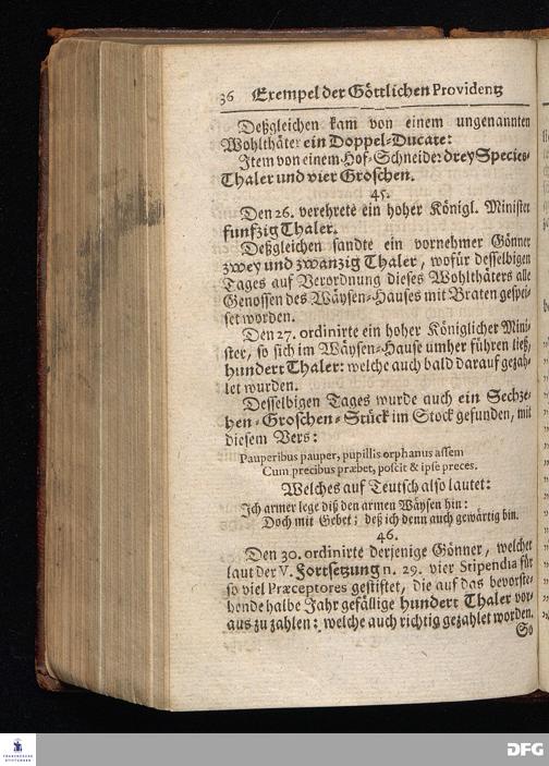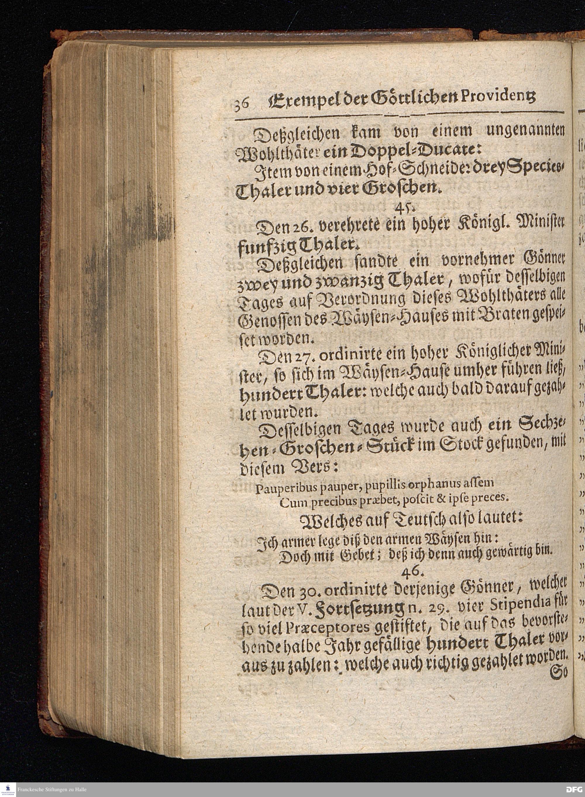 Segens=volle Fußstapfen des noch lebenden und waltenden liebrei=│chen und getreuen GOttes, Zur Beschämung des Unglaubens und Stärckung des Glaubens, entdecket durch eine wahrhafte und umständliche Nachricht von dem Wäysen=Hause und übrigen Anstalten zu Glaucha vor Halle; Welche Im Jahr 1701. zum Druck befördert, ietzo aber zum dritten mal ediret, und bis auf gegenwärtiges Jahr fortgesetzet von August Hermann Francken, S.Theol.Prof.und Past. HALLE, in Verlegung des Wäysen=Hauses, MDCCIX.