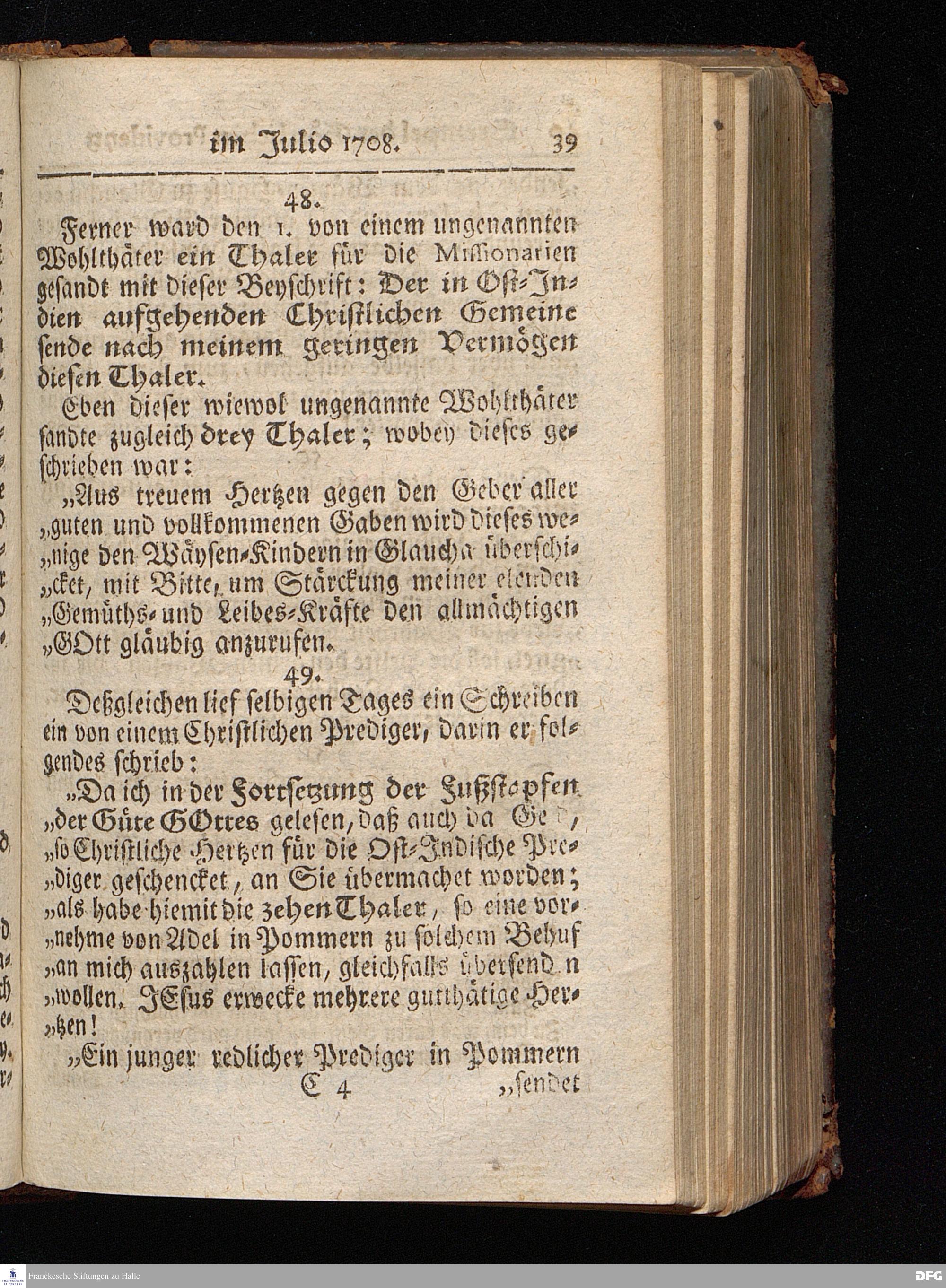 Segens=volle Fußstapfen des noch lebenden und waltenden liebrei=│chen und getreuen GOttes, Zur Beschämung des Unglaubens und Stärckung des Glaubens, entdecket durch eine wahrhafte und umständliche Nachricht von dem Wäysen=Hause und übrigen Anstalten zu Glaucha vor Halle; Welche Im Jahr 1701. zum Druck befördert, ietzo aber zum dritten mal ediret, und bis auf gegenwärtiges Jahr fortgesetzet von August Hermann Francken, S.Theol.Prof.und Past. HALLE, in Verlegung des Wäysen=Hauses, MDCCIX.