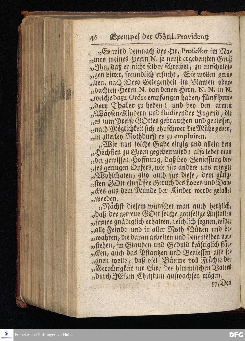 Segens=volle Fußstapfen des noch lebenden und waltenden liebrei=│chen und getreuen GOttes, Zur Beschämung des Unglaubens und Stärckung des Glaubens, entdecket durch eine wahrhafte und umständliche Nachricht von dem Wäysen=Hause und übrigen Anstalten zu Glaucha vor Halle; Welche Im Jahr 1701. zum Druck befördert, ietzo aber zum dritten mal ediret, und bis auf gegenwärtiges Jahr fortgesetzet von August Hermann Francken, S.Theol.Prof.und Past. HALLE, in Verlegung des Wäysen=Hauses, MDCCIX.