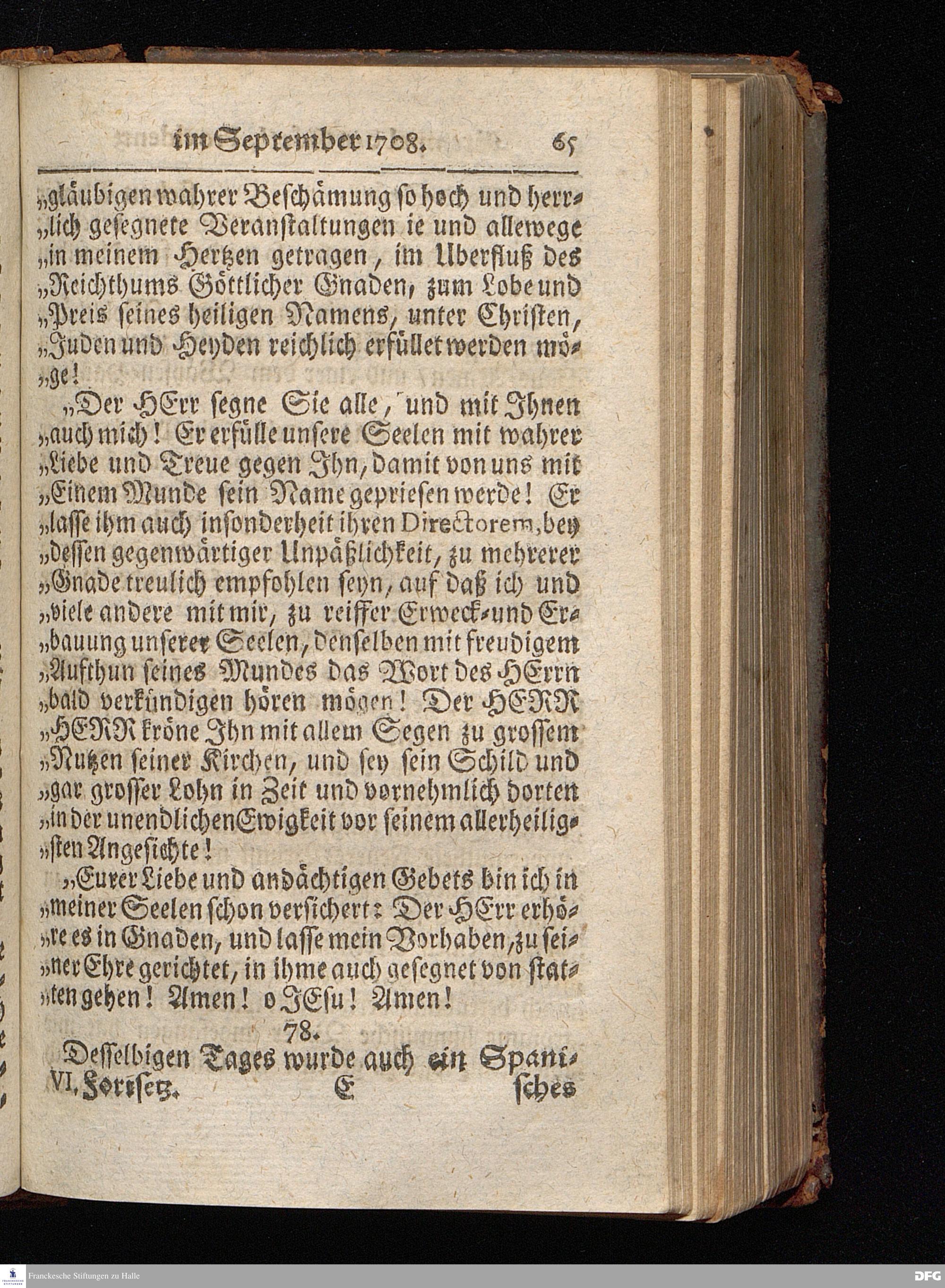 Segens=volle Fußstapfen des noch lebenden und waltenden liebrei=│chen und getreuen GOttes, Zur Beschämung des Unglaubens und Stärckung des Glaubens, entdecket durch eine wahrhafte und umständliche Nachricht von dem Wäysen=Hause und übrigen Anstalten zu Glaucha vor Halle; Welche Im Jahr 1701. zum Druck befördert, ietzo aber zum dritten mal ediret, und bis auf gegenwärtiges Jahr fortgesetzet von August Hermann Francken, S.Theol.Prof.und Past. HALLE, in Verlegung des Wäysen=Hauses, MDCCIX.