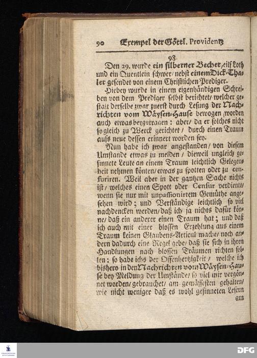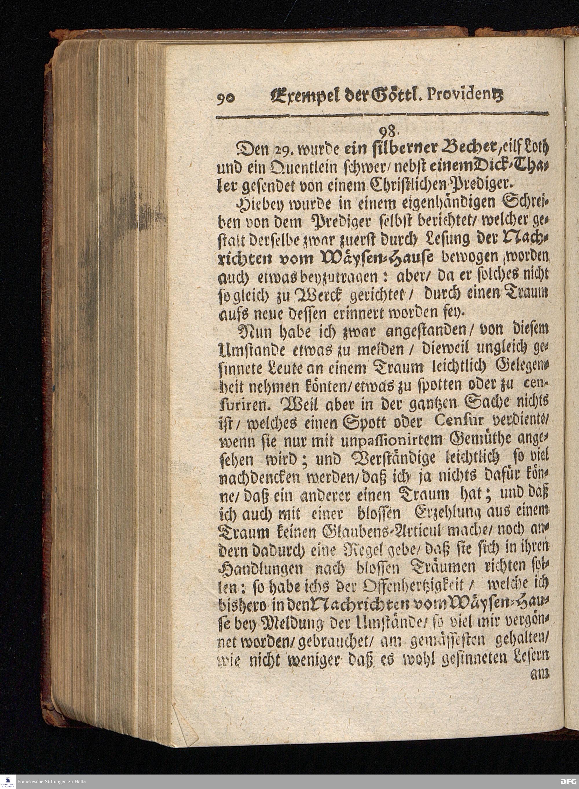 Segens=volle Fußstapfen des noch lebenden und waltenden liebrei=│chen und getreuen GOttes, Zur Beschämung des Unglaubens und Stärckung des Glaubens, entdecket durch eine wahrhafte und umständliche Nachricht von dem Wäysen=Hause und übrigen Anstalten zu Glaucha vor Halle; Welche Im Jahr 1701. zum Druck befördert, ietzo aber zum dritten mal ediret, und bis auf gegenwärtiges Jahr fortgesetzet von August Hermann Francken, S.Theol.Prof.und Past. HALLE, in Verlegung des Wäysen=Hauses, MDCCIX.
