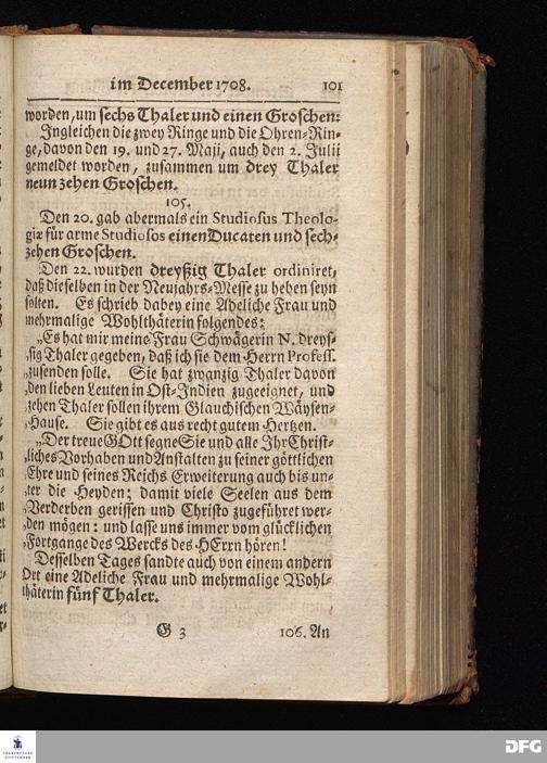 Segens=volle Fußstapfen des noch lebenden und waltenden liebrei=│chen und getreuen GOttes, Zur Beschämung des Unglaubens und Stärckung des Glaubens, entdecket durch eine wahrhafte und umständliche Nachricht von dem Wäysen=Hause und übrigen Anstalten zu Glaucha vor Halle; Welche Im Jahr 1701. zum Druck befördert, ietzo aber zum dritten mal ediret, und bis auf gegenwärtiges Jahr fortgesetzet von August Hermann Francken, S.Theol.Prof.und Past. HALLE, in Verlegung des Wäysen=Hauses, MDCCIX.