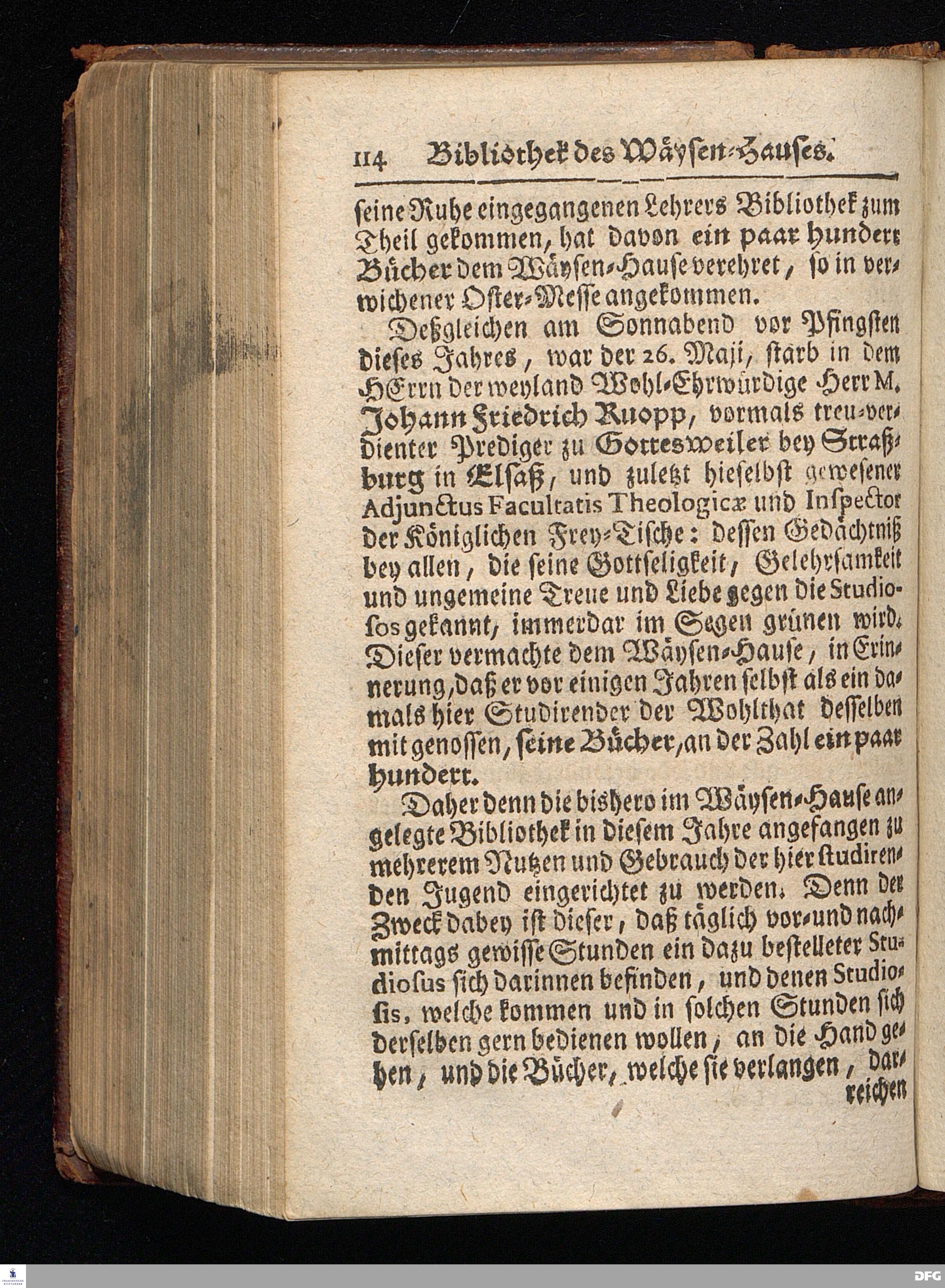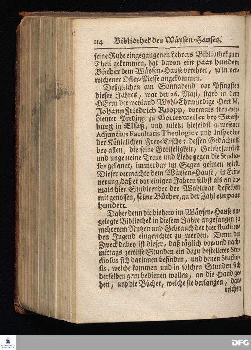 Segens=volle Fußstapfen des noch lebenden und waltenden liebrei=│chen und getreuen GOttes, Zur Beschämung des Unglaubens und Stärckung des Glaubens, entdecket durch eine wahrhafte und umständliche Nachricht von dem Wäysen=Hause und übrigen Anstalten zu Glaucha vor Halle; Welche Im Jahr 1701. zum Druck befördert, ietzo aber zum dritten mal ediret, und bis auf gegenwärtiges Jahr fortgesetzet von August Hermann Francken, S.Theol.Prof.und Past. HALLE, in Verlegung des Wäysen=Hauses, MDCCIX.