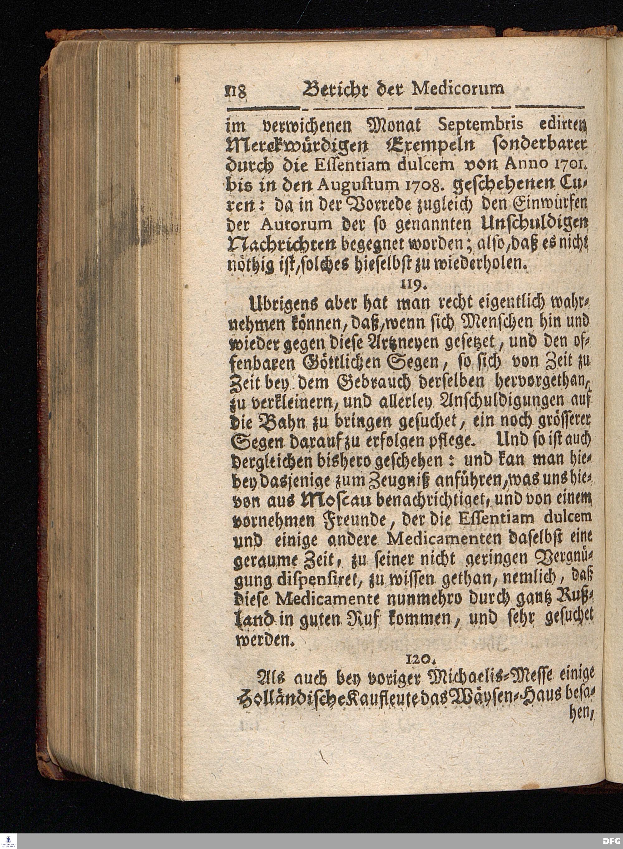 Segens=volle Fußstapfen des noch lebenden und waltenden liebrei=│chen und getreuen GOttes, Zur Beschämung des Unglaubens und Stärckung des Glaubens, entdecket durch eine wahrhafte und umständliche Nachricht von dem Wäysen=Hause und übrigen Anstalten zu Glaucha vor Halle; Welche Im Jahr 1701. zum Druck befördert, ietzo aber zum dritten mal ediret, und bis auf gegenwärtiges Jahr fortgesetzet von August Hermann Francken, S.Theol.Prof.und Past. HALLE, in Verlegung des Wäysen=Hauses, MDCCIX.