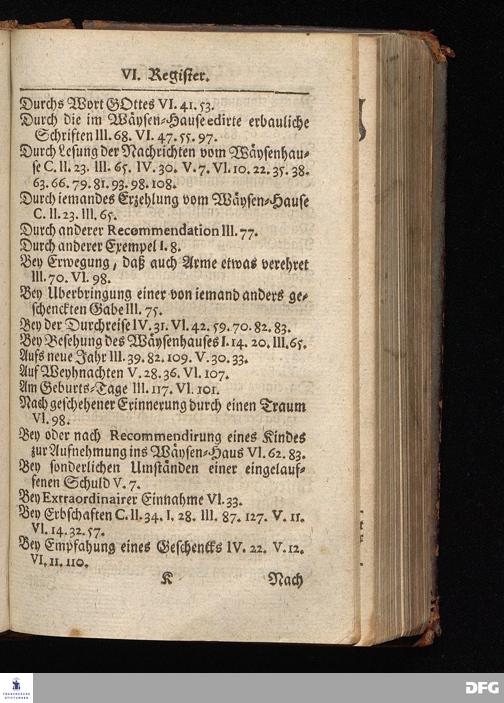 Segens=volle Fußstapfen des noch lebenden und waltenden liebrei=│chen und getreuen GOttes, Zur Beschämung des Unglaubens und Stärckung des Glaubens, entdecket durch eine wahrhafte und umständliche Nachricht von dem Wäysen=Hause und übrigen Anstalten zu Glaucha vor Halle; Welche Im Jahr 1701. zum Druck befördert, ietzo aber zum dritten mal ediret, und bis auf gegenwärtiges Jahr fortgesetzet von August Hermann Francken, S.Theol.Prof.und Past. HALLE, in Verlegung des Wäysen=Hauses, MDCCIX.