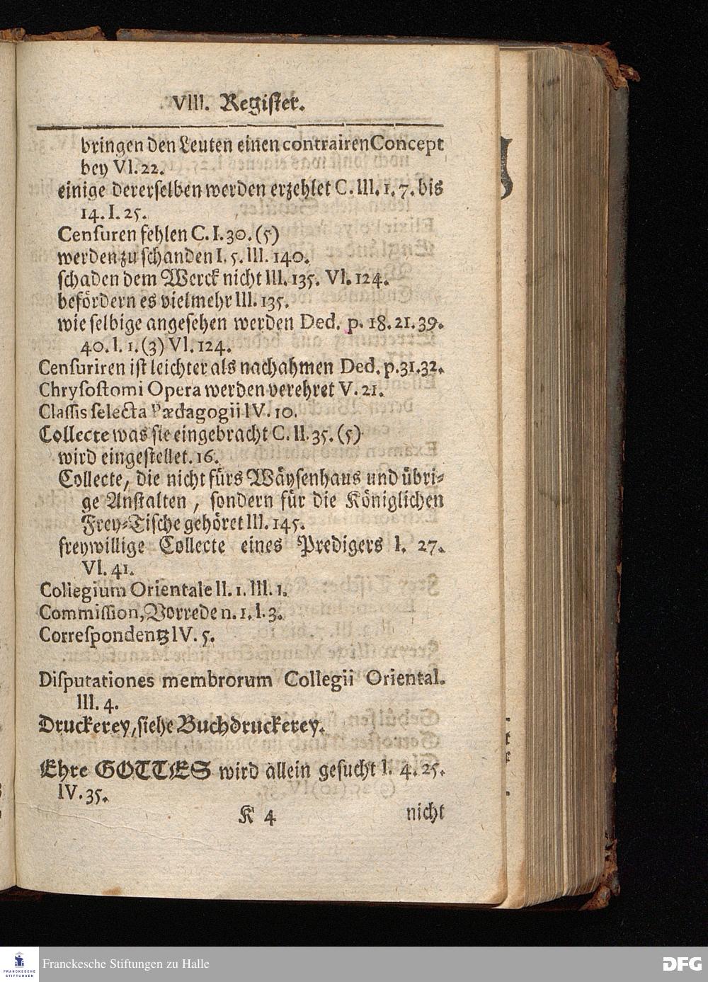 Segens=volle Fußstapfen des noch lebenden und waltenden liebrei=│chen und getreuen GOttes, Zur Beschämung des Unglaubens und Stärckung des Glaubens, entdecket durch eine wahrhafte und umständliche Nachricht von dem Wäysen=Hause und übrigen Anstalten zu Glaucha vor Halle; Welche Im Jahr 1701. zum Druck befördert, ietzo aber zum dritten mal ediret, und bis auf gegenwärtiges Jahr fortgesetzet von August Hermann Francken, S.Theol.Prof.und Past. HALLE, in Verlegung des Wäysen=Hauses, MDCCIX.