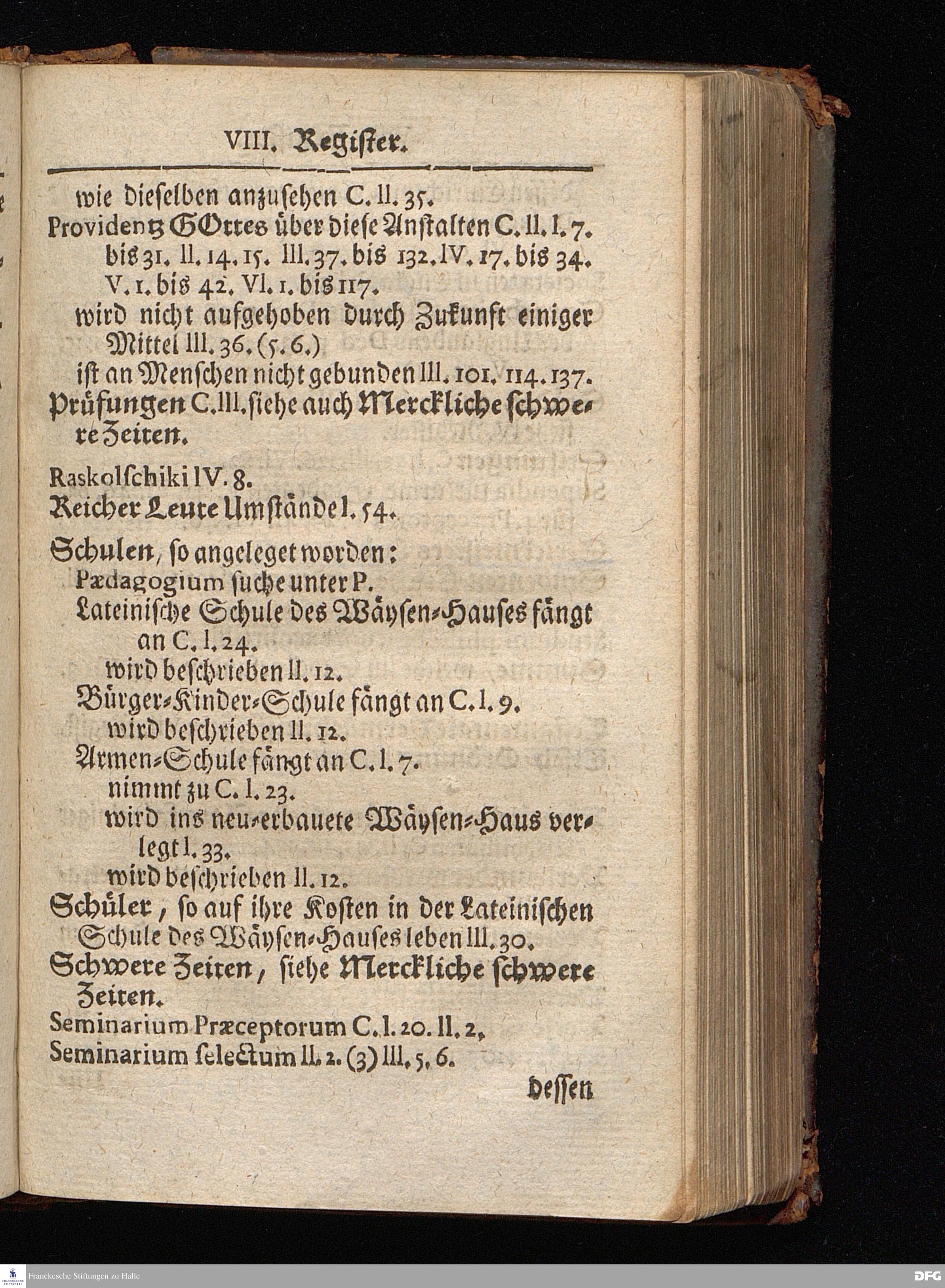 Segens=volle Fußstapfen des noch lebenden und waltenden liebrei=│chen und getreuen GOttes, Zur Beschämung des Unglaubens und Stärckung des Glaubens, entdecket durch eine wahrhafte und umständliche Nachricht von dem Wäysen=Hause und übrigen Anstalten zu Glaucha vor Halle; Welche Im Jahr 1701. zum Druck befördert, ietzo aber zum dritten mal ediret, und bis auf gegenwärtiges Jahr fortgesetzet von August Hermann Francken, S.Theol.Prof.und Past. HALLE, in Verlegung des Wäysen=Hauses, MDCCIX.