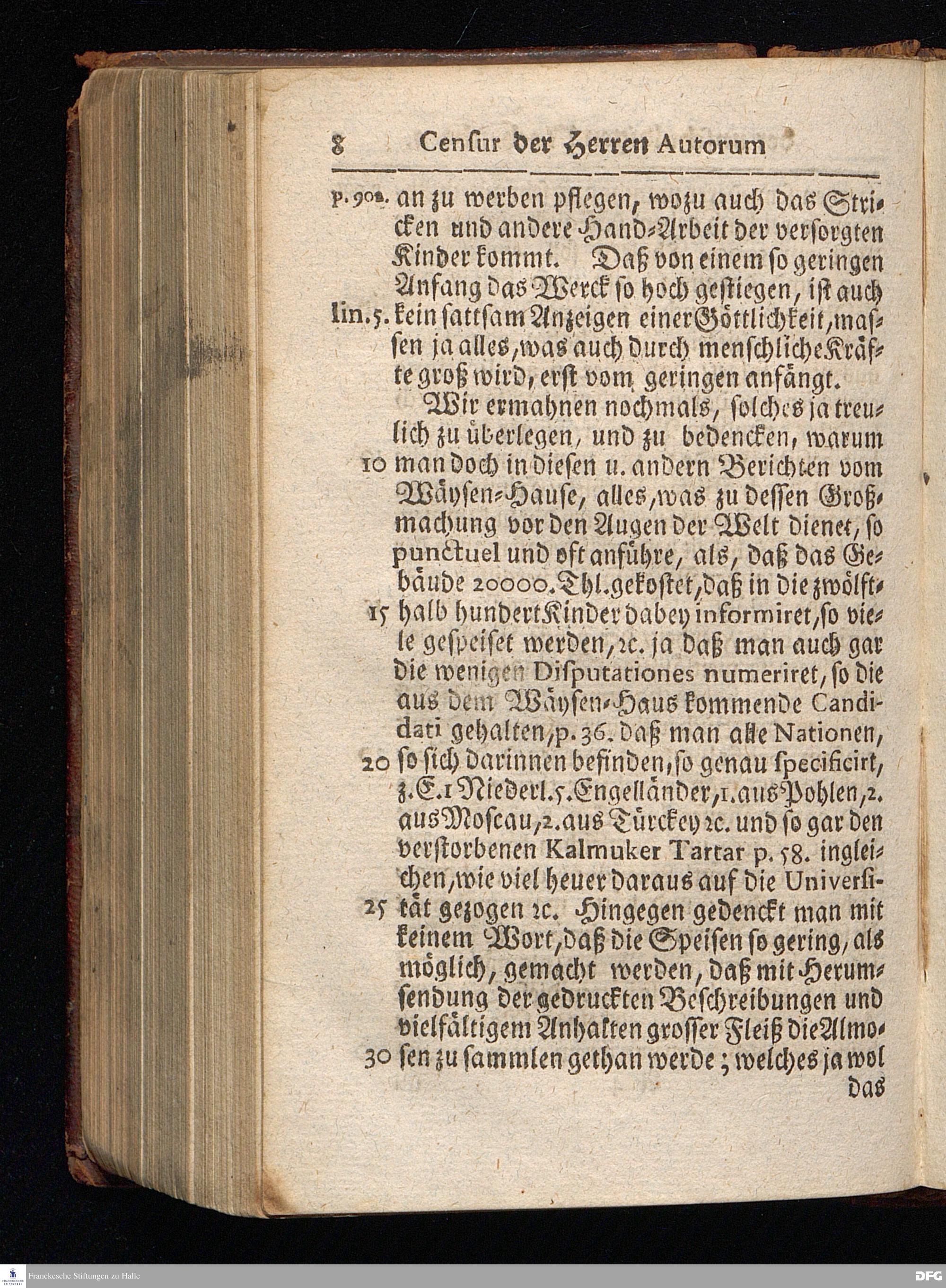 Segens=volle Fußstapfen des noch lebenden und waltenden liebrei=│chen und getreuen GOttes, Zur Beschämung des Unglaubens und Stärckung des Glaubens, entdecket durch eine wahrhafte und umständliche Nachricht von dem Wäysen=Hause und übrigen Anstalten zu Glaucha vor Halle; Welche Im Jahr 1701. zum Druck befördert, ietzo aber zum dritten mal ediret, und bis auf gegenwärtiges Jahr fortgesetzet von August Hermann Francken, S.Theol.Prof.und Past. HALLE, in Verlegung des Wäysen=Hauses, MDCCIX.