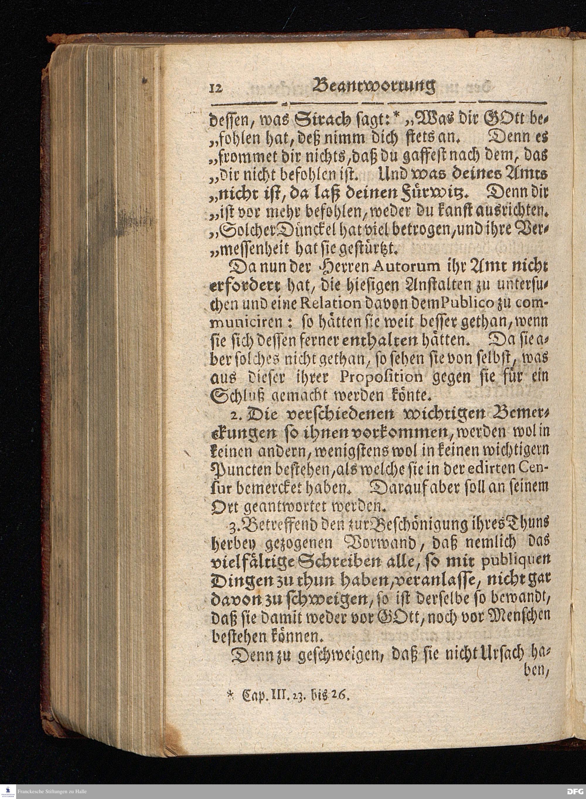 Segens=volle Fußstapfen des noch lebenden und waltenden liebrei=│chen und getreuen GOttes, Zur Beschämung des Unglaubens und Stärckung des Glaubens, entdecket durch eine wahrhafte und umständliche Nachricht von dem Wäysen=Hause und übrigen Anstalten zu Glaucha vor Halle; Welche Im Jahr 1701. zum Druck befördert, ietzo aber zum dritten mal ediret, und bis auf gegenwärtiges Jahr fortgesetzet von August Hermann Francken, S.Theol.Prof.und Past. HALLE, in Verlegung des Wäysen=Hauses, MDCCIX.