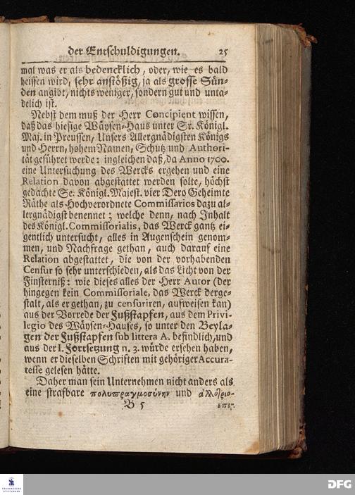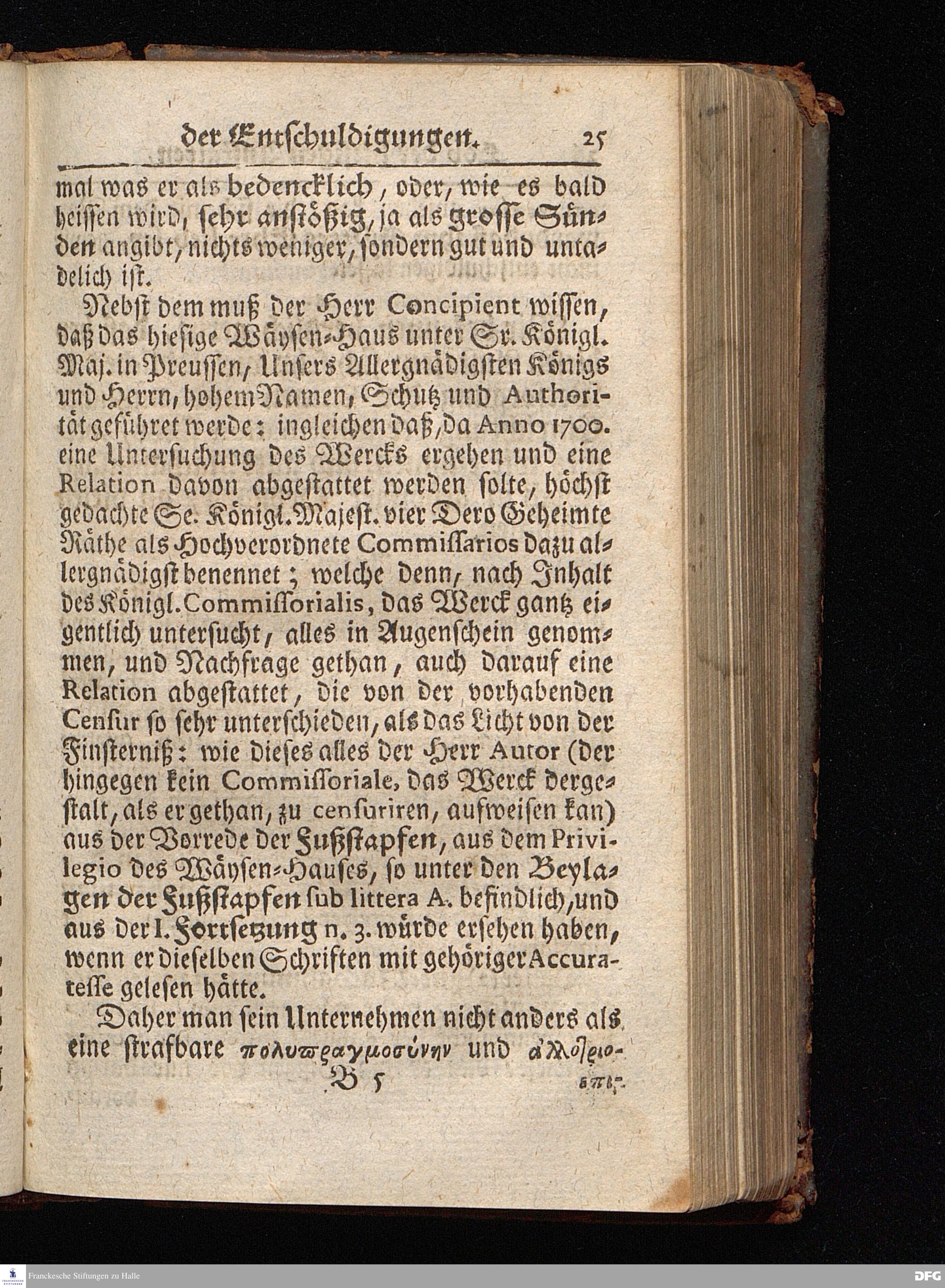 Segens=volle Fußstapfen des noch lebenden und waltenden liebrei=│chen und getreuen GOttes, Zur Beschämung des Unglaubens und Stärckung des Glaubens, entdecket durch eine wahrhafte und umständliche Nachricht von dem Wäysen=Hause und übrigen Anstalten zu Glaucha vor Halle; Welche Im Jahr 1701. zum Druck befördert, ietzo aber zum dritten mal ediret, und bis auf gegenwärtiges Jahr fortgesetzet von August Hermann Francken, S.Theol.Prof.und Past. HALLE, in Verlegung des Wäysen=Hauses, MDCCIX.