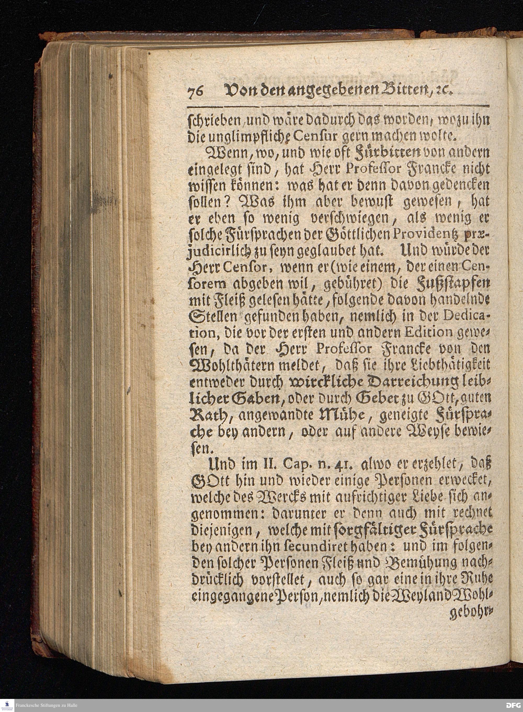 Segens=volle Fußstapfen des noch lebenden und waltenden liebrei=│chen und getreuen GOttes, Zur Beschämung des Unglaubens und Stärckung des Glaubens, entdecket durch eine wahrhafte und umständliche Nachricht von dem Wäysen=Hause und übrigen Anstalten zu Glaucha vor Halle; Welche Im Jahr 1701. zum Druck befördert, ietzo aber zum dritten mal ediret, und bis auf gegenwärtiges Jahr fortgesetzet von August Hermann Francken, S.Theol.Prof.und Past. HALLE, in Verlegung des Wäysen=Hauses, MDCCIX.