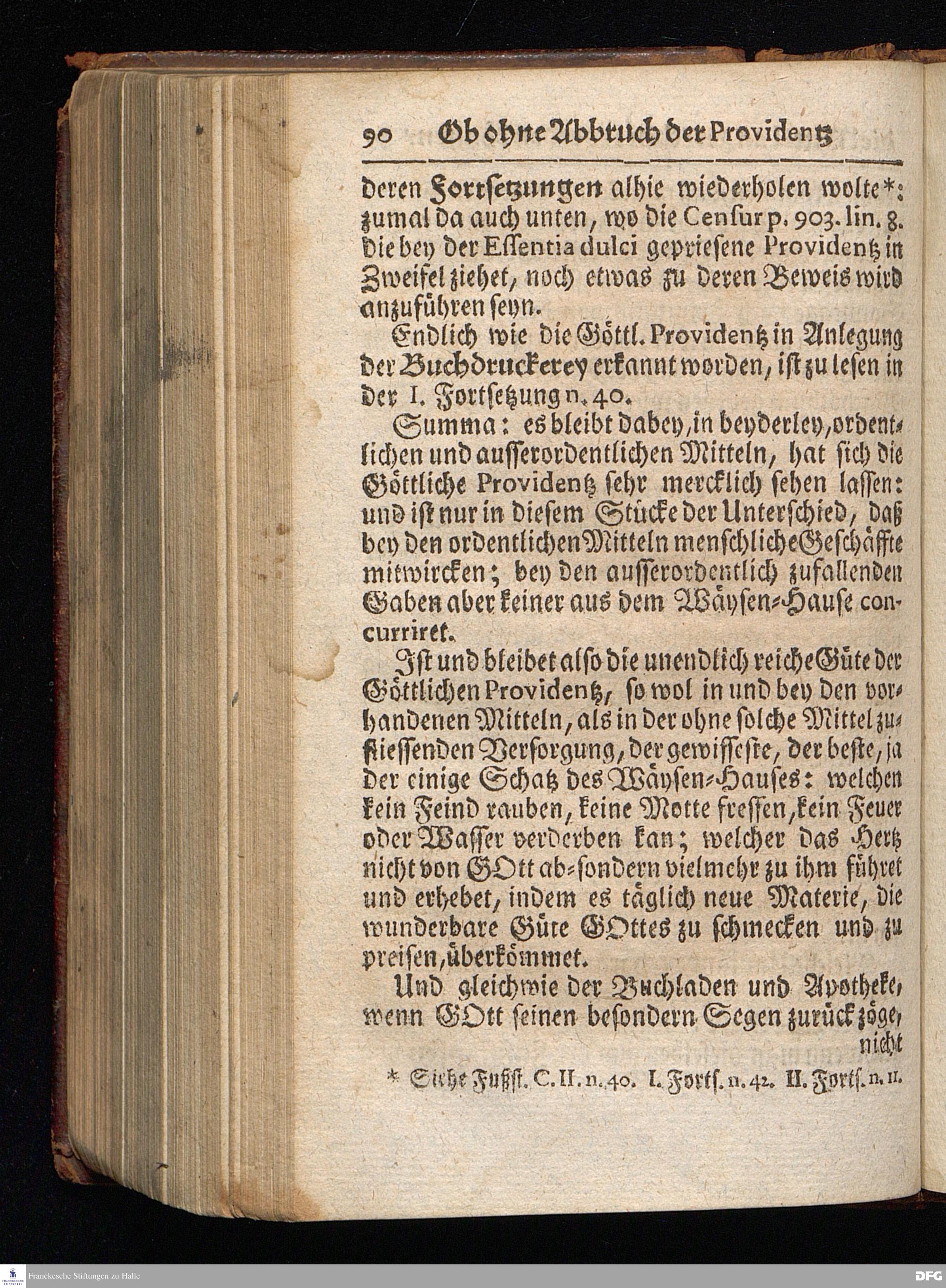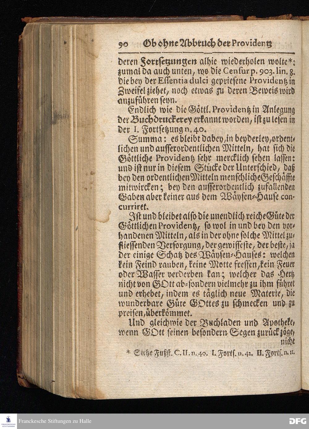 Segens=volle Fußstapfen des noch lebenden und waltenden liebrei=│chen und getreuen GOttes, Zur Beschämung des Unglaubens und Stärckung des Glaubens, entdecket durch eine wahrhafte und umständliche Nachricht von dem Wäysen=Hause und übrigen Anstalten zu Glaucha vor Halle; Welche Im Jahr 1701. zum Druck befördert, ietzo aber zum dritten mal ediret, und bis auf gegenwärtiges Jahr fortgesetzet von August Hermann Francken, S.Theol.Prof.und Past. HALLE, in Verlegung des Wäysen=Hauses, MDCCIX.