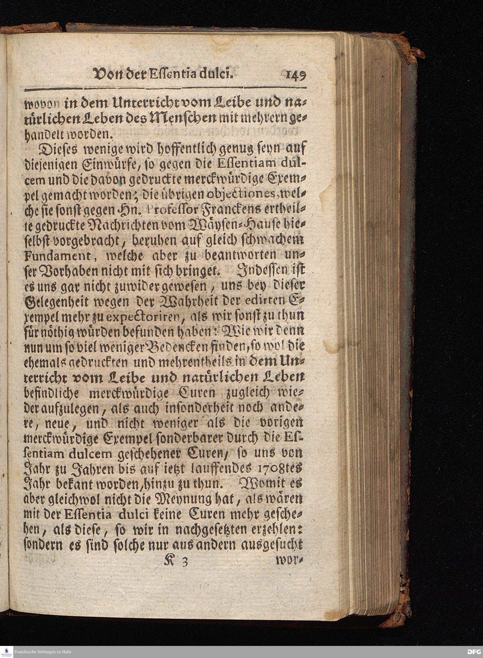 Segens=volle Fußstapfen des noch lebenden und waltenden liebrei=│chen und getreuen GOttes, Zur Beschämung des Unglaubens und Stärckung des Glaubens, entdecket durch eine wahrhafte und umständliche Nachricht von dem Wäysen=Hause und übrigen Anstalten zu Glaucha vor Halle; Welche Im Jahr 1701. zum Druck befördert, ietzo aber zum dritten mal ediret, und bis auf gegenwärtiges Jahr fortgesetzet von August Hermann Francken, S.Theol.Prof.und Past. HALLE, in Verlegung des Wäysen=Hauses, MDCCIX.