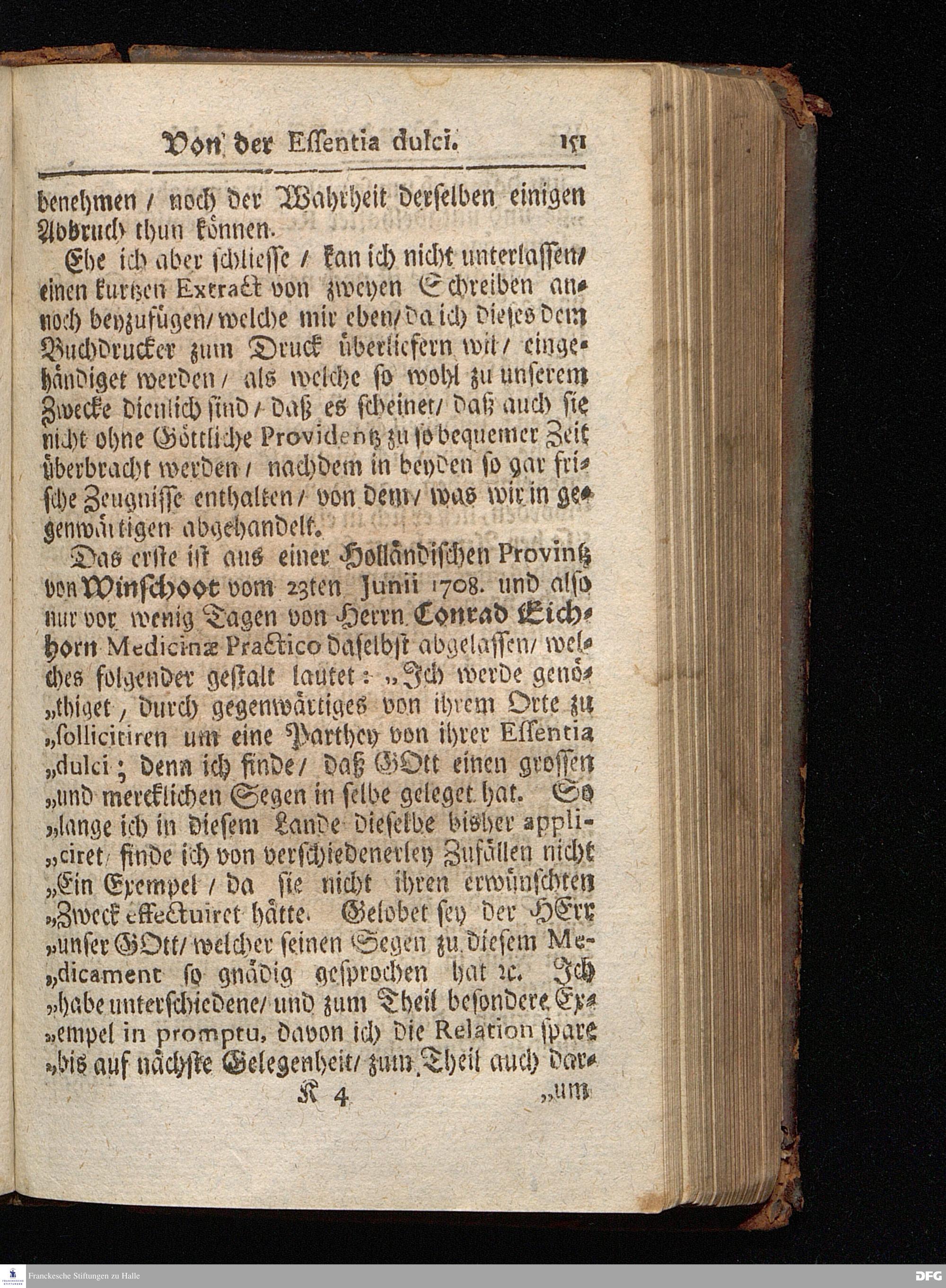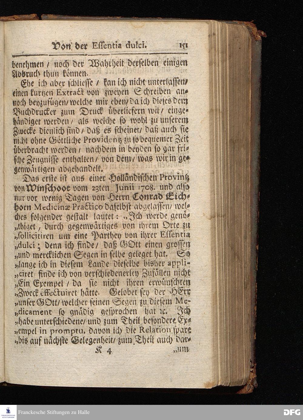 Segens=volle Fußstapfen des noch lebenden und waltenden liebrei=│chen und getreuen GOttes, Zur Beschämung des Unglaubens und Stärckung des Glaubens, entdecket durch eine wahrhafte und umständliche Nachricht von dem Wäysen=Hause und übrigen Anstalten zu Glaucha vor Halle; Welche Im Jahr 1701. zum Druck befördert, ietzo aber zum dritten mal ediret, und bis auf gegenwärtiges Jahr fortgesetzet von August Hermann Francken, S.Theol.Prof.und Past. HALLE, in Verlegung des Wäysen=Hauses, MDCCIX.
