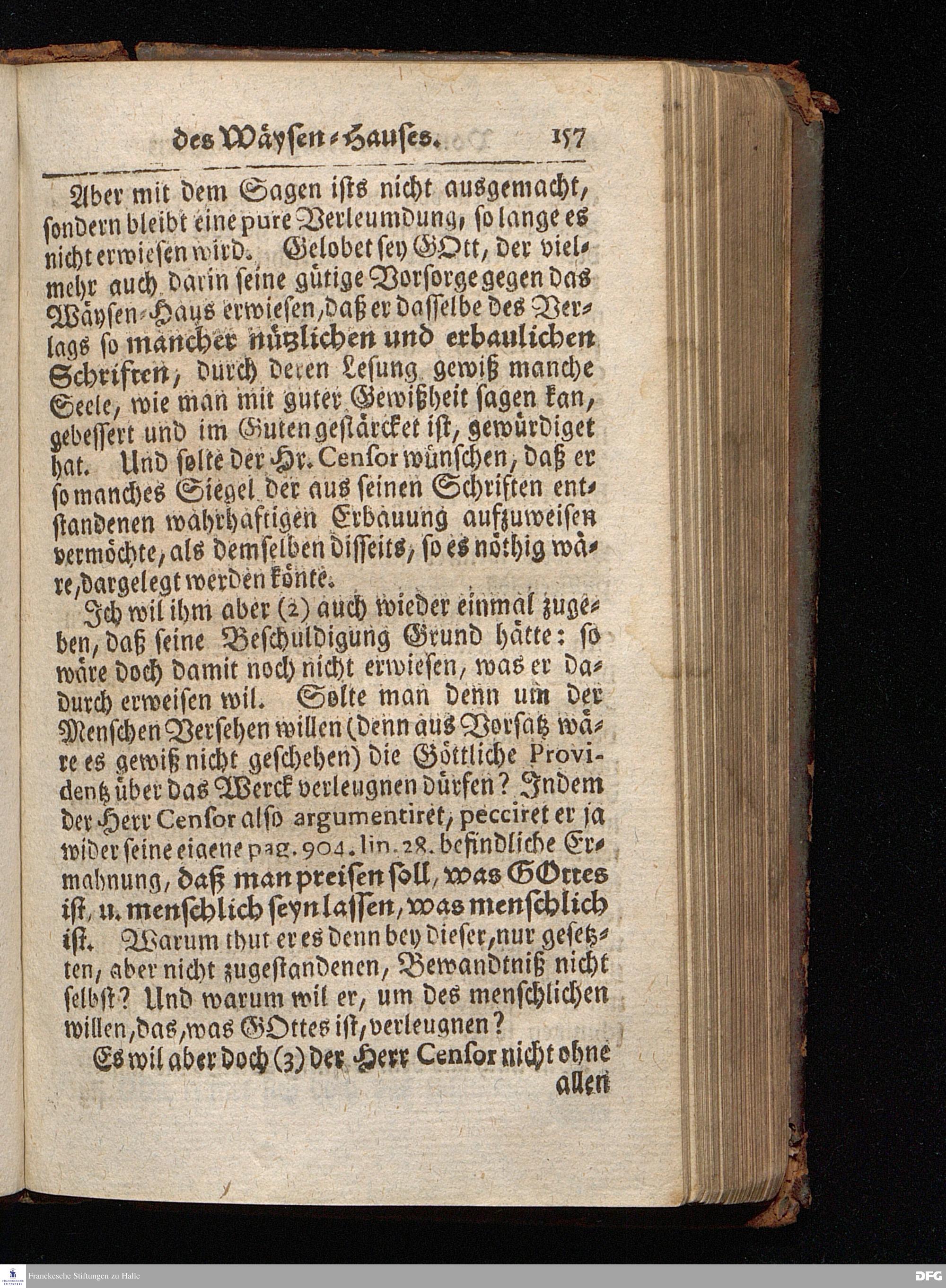 Segens=volle Fußstapfen des noch lebenden und waltenden liebrei=│chen und getreuen GOttes, Zur Beschämung des Unglaubens und Stärckung des Glaubens, entdecket durch eine wahrhafte und umständliche Nachricht von dem Wäysen=Hause und übrigen Anstalten zu Glaucha vor Halle; Welche Im Jahr 1701. zum Druck befördert, ietzo aber zum dritten mal ediret, und bis auf gegenwärtiges Jahr fortgesetzet von August Hermann Francken, S.Theol.Prof.und Past. HALLE, in Verlegung des Wäysen=Hauses, MDCCIX.