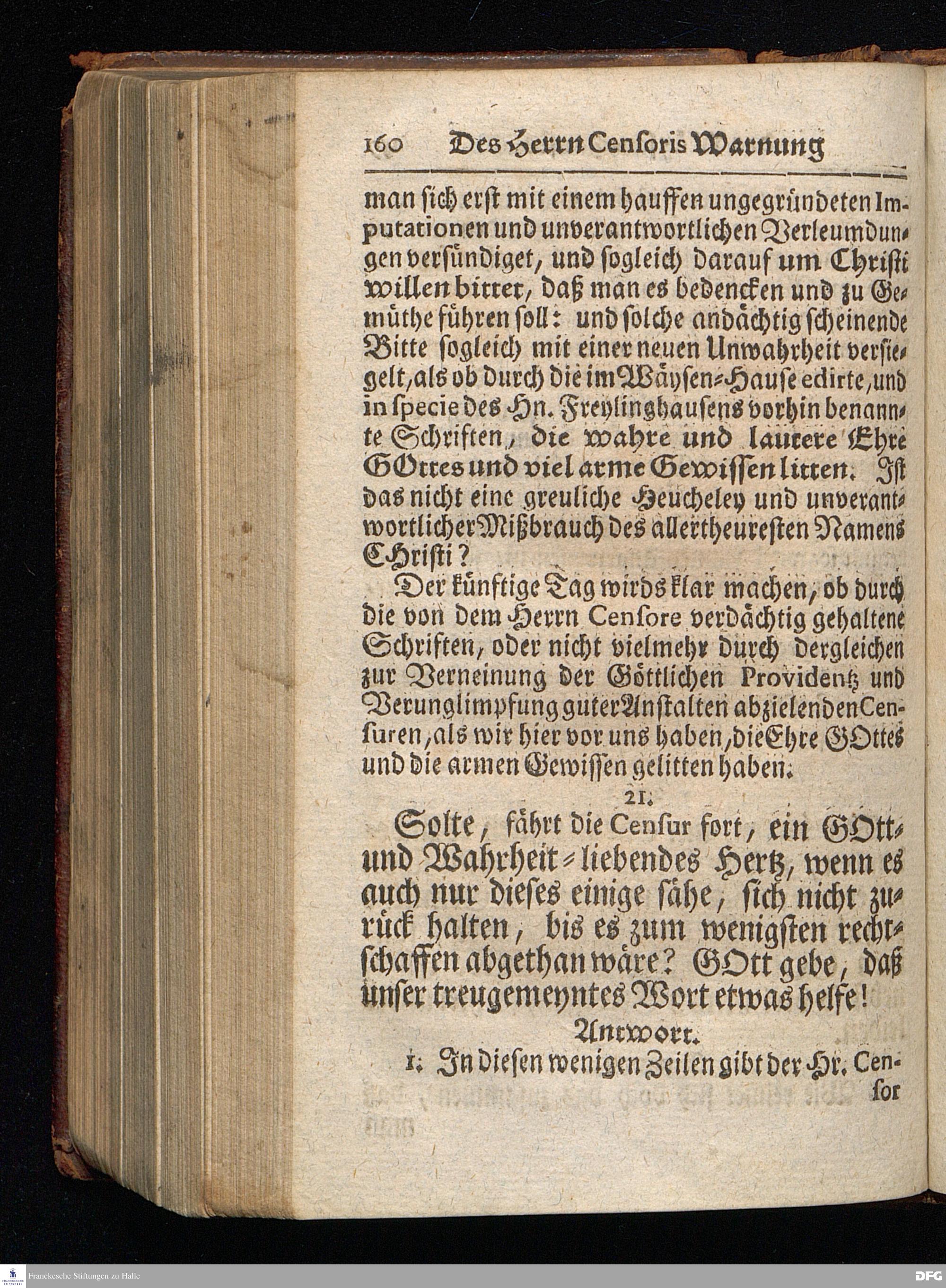 Segens=volle Fußstapfen des noch lebenden und waltenden liebrei=│chen und getreuen GOttes, Zur Beschämung des Unglaubens und Stärckung des Glaubens, entdecket durch eine wahrhafte und umständliche Nachricht von dem Wäysen=Hause und übrigen Anstalten zu Glaucha vor Halle; Welche Im Jahr 1701. zum Druck befördert, ietzo aber zum dritten mal ediret, und bis auf gegenwärtiges Jahr fortgesetzet von August Hermann Francken, S.Theol.Prof.und Past. HALLE, in Verlegung des Wäysen=Hauses, MDCCIX.