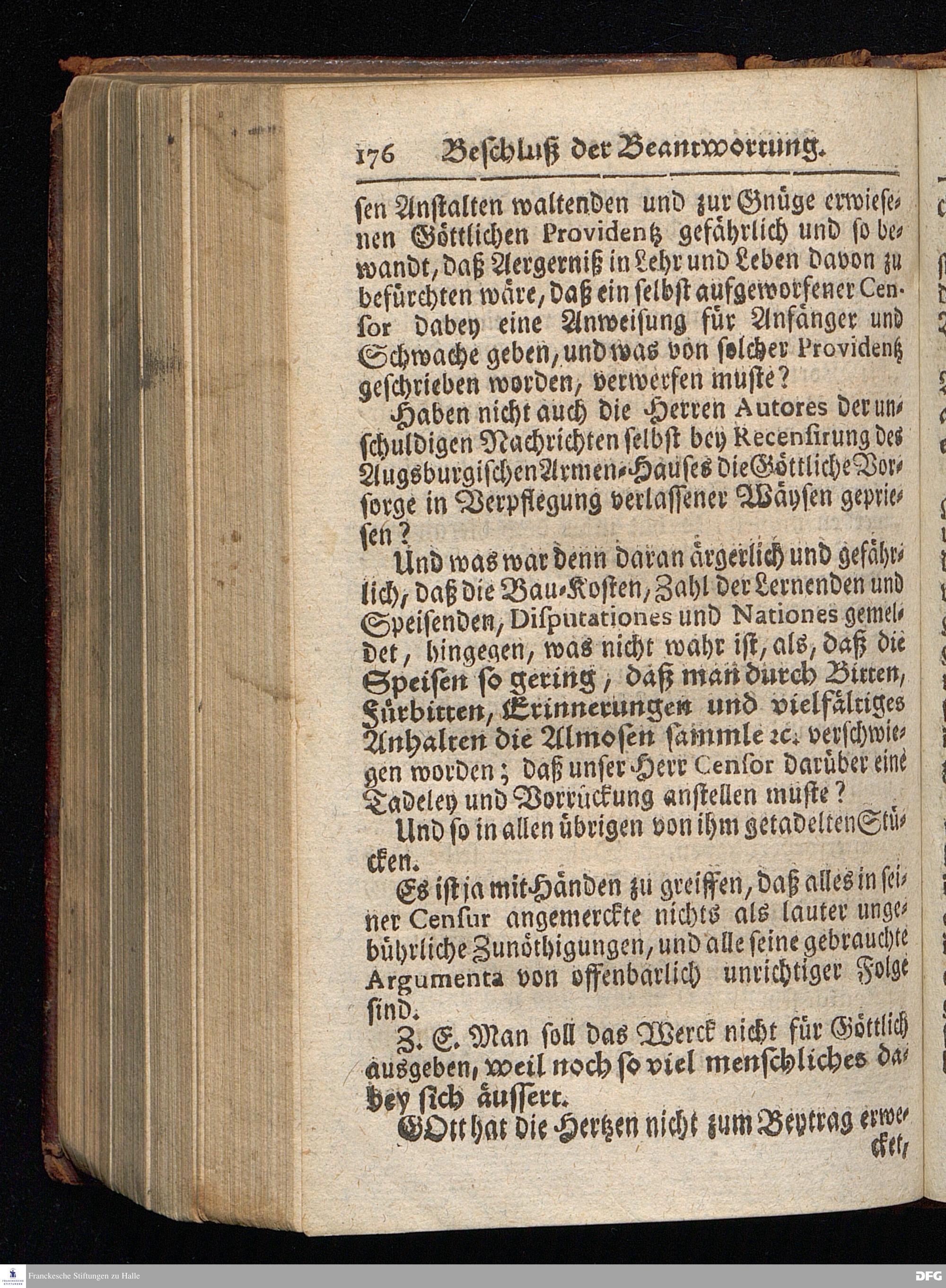Segens=volle Fußstapfen des noch lebenden und waltenden liebrei=│chen und getreuen GOttes, Zur Beschämung des Unglaubens und Stärckung des Glaubens, entdecket durch eine wahrhafte und umständliche Nachricht von dem Wäysen=Hause und übrigen Anstalten zu Glaucha vor Halle; Welche Im Jahr 1701. zum Druck befördert, ietzo aber zum dritten mal ediret, und bis auf gegenwärtiges Jahr fortgesetzet von August Hermann Francken, S.Theol.Prof.und Past. HALLE, in Verlegung des Wäysen=Hauses, MDCCIX.