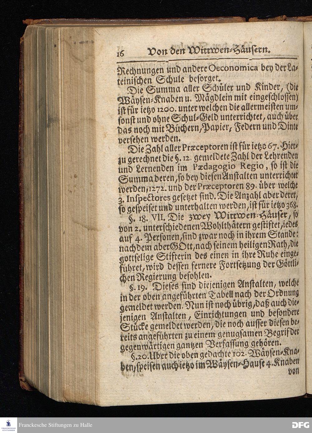 Segens=volle Fußstapfen des noch lebenden und waltenden liebrei=│chen und getreuen GOttes, Zur Beschämung des Unglaubens und Stärckung des Glaubens, entdecket durch eine wahrhafte und umständliche Nachricht von dem Wäysen=Hause und übrigen Anstalten zu Glaucha vor Halle; Welche Im Jahr 1701. zum Druck befördert, ietzo aber zum dritten mal ediret, und bis auf gegenwärtiges Jahr fortgesetzet von August Hermann Francken, S.Theol.Prof.und Past. HALLE, in Verlegung des Wäysen=Hauses, MDCCIX.