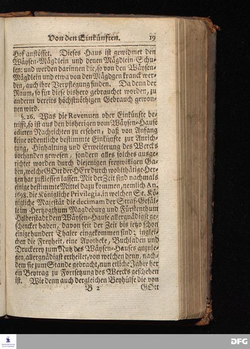 Segens=volle Fußstapfen des noch lebenden und waltenden liebrei=│chen und getreuen GOttes, Zur Beschämung des Unglaubens und Stärckung des Glaubens, entdecket durch eine wahrhafte und umständliche Nachricht von dem Wäysen=Hause und übrigen Anstalten zu Glaucha vor Halle; Welche Im Jahr 1701. zum Druck befördert, ietzo aber zum dritten mal ediret, und bis auf gegenwärtiges Jahr fortgesetzet von August Hermann Francken, S.Theol.Prof.und Past. HALLE, in Verlegung des Wäysen=Hauses, MDCCIX.