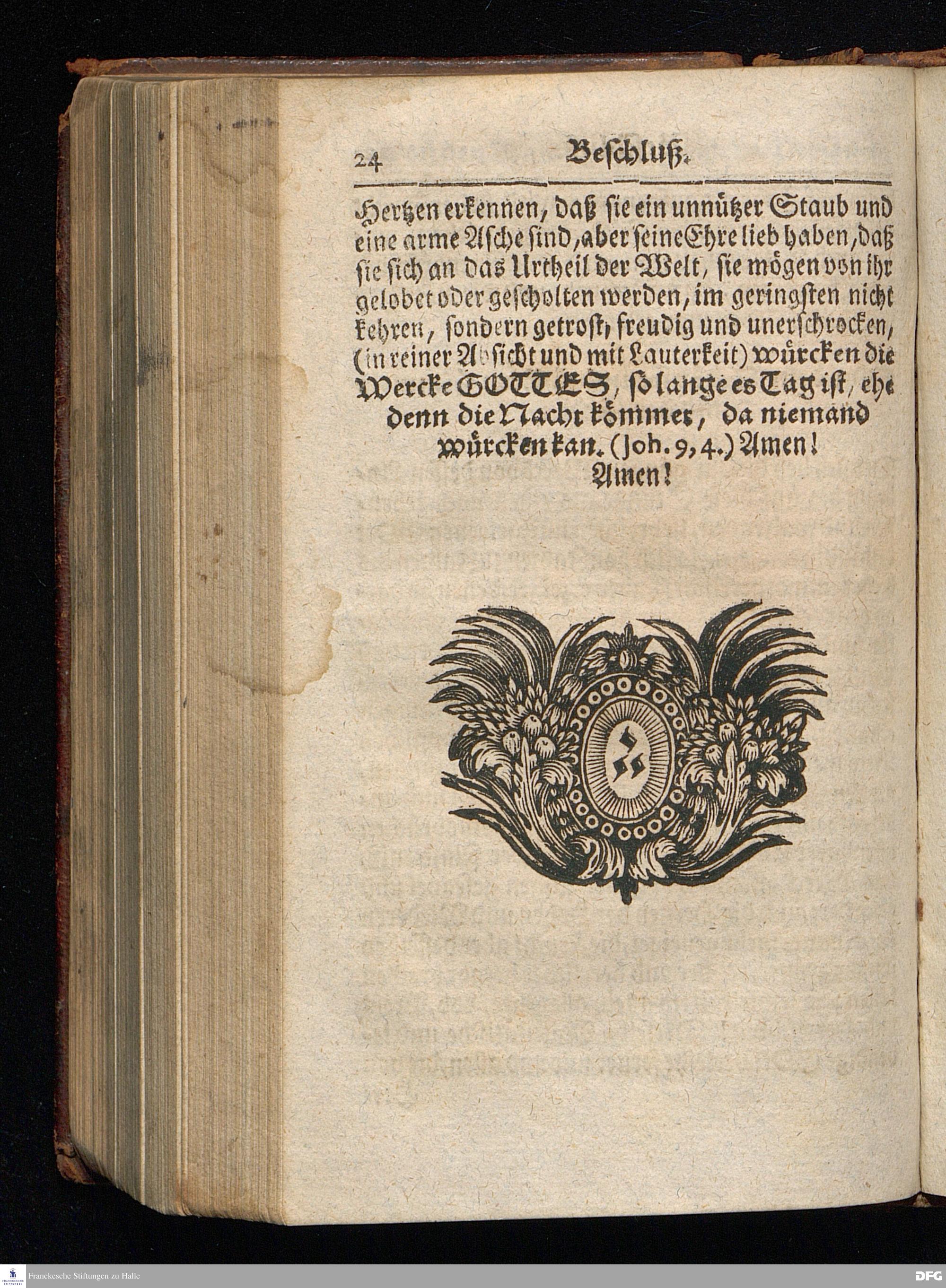 Segens=volle Fußstapfen des noch lebenden und waltenden liebrei=│chen und getreuen GOttes, Zur Beschämung des Unglaubens und Stärckung des Glaubens, entdecket durch eine wahrhafte und umständliche Nachricht von dem Wäysen=Hause und übrigen Anstalten zu Glaucha vor Halle; Welche Im Jahr 1701. zum Druck befördert, ietzo aber zum dritten mal ediret, und bis auf gegenwärtiges Jahr fortgesetzet von August Hermann Francken, S.Theol.Prof.und Past. HALLE, in Verlegung des Wäysen=Hauses, MDCCIX.