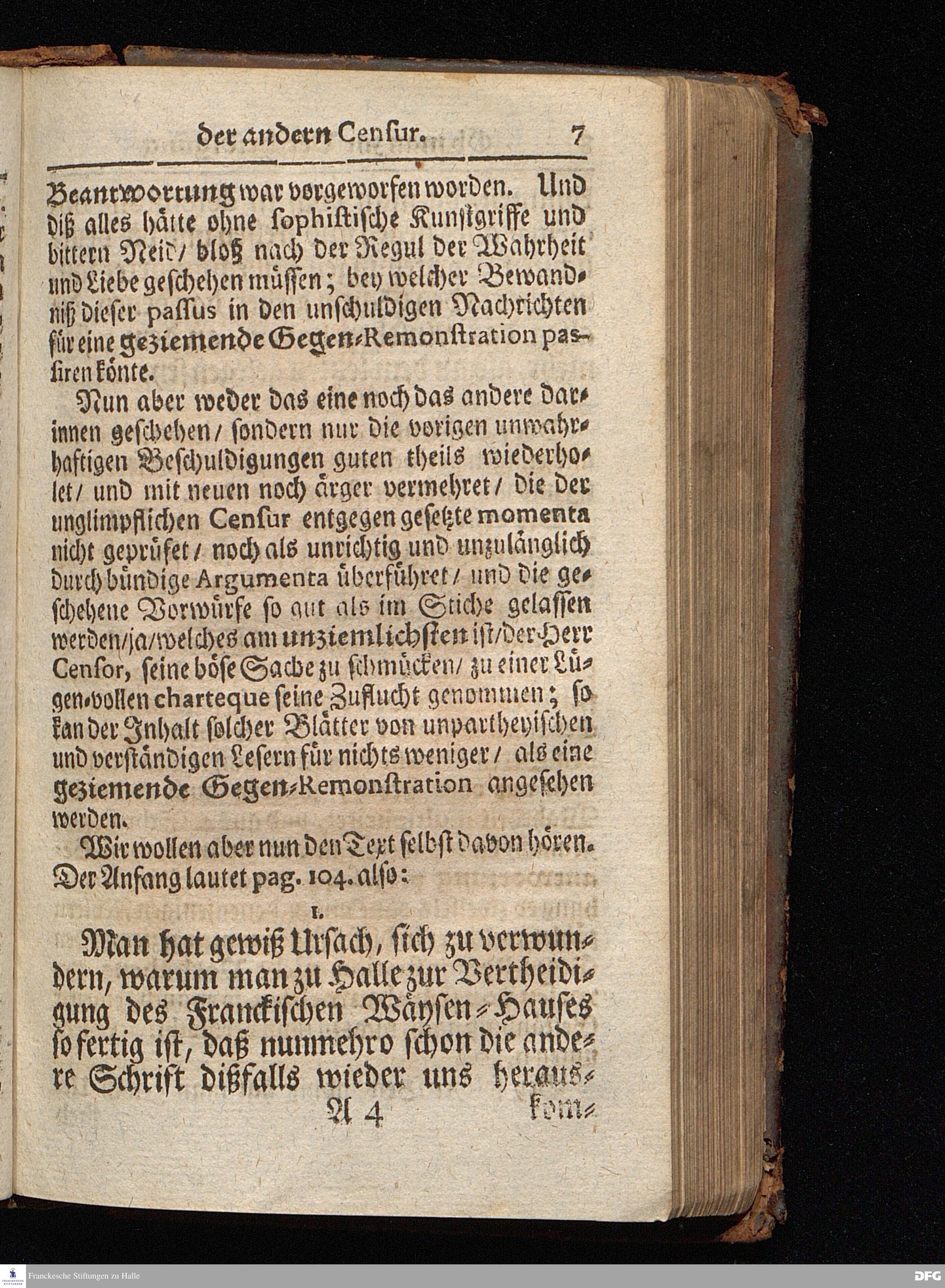 Segens=volle Fußstapfen des noch lebenden und waltenden liebrei=│chen und getreuen GOttes, Zur Beschämung des Unglaubens und Stärckung des Glaubens, entdecket durch eine wahrhafte und umständliche Nachricht von dem Wäysen=Hause und übrigen Anstalten zu Glaucha vor Halle; Welche Im Jahr 1701. zum Druck befördert, ietzo aber zum dritten mal ediret, und bis auf gegenwärtiges Jahr fortgesetzet von August Hermann Francken, S.Theol.Prof.und Past. HALLE, in Verlegung des Wäysen=Hauses, MDCCIX.