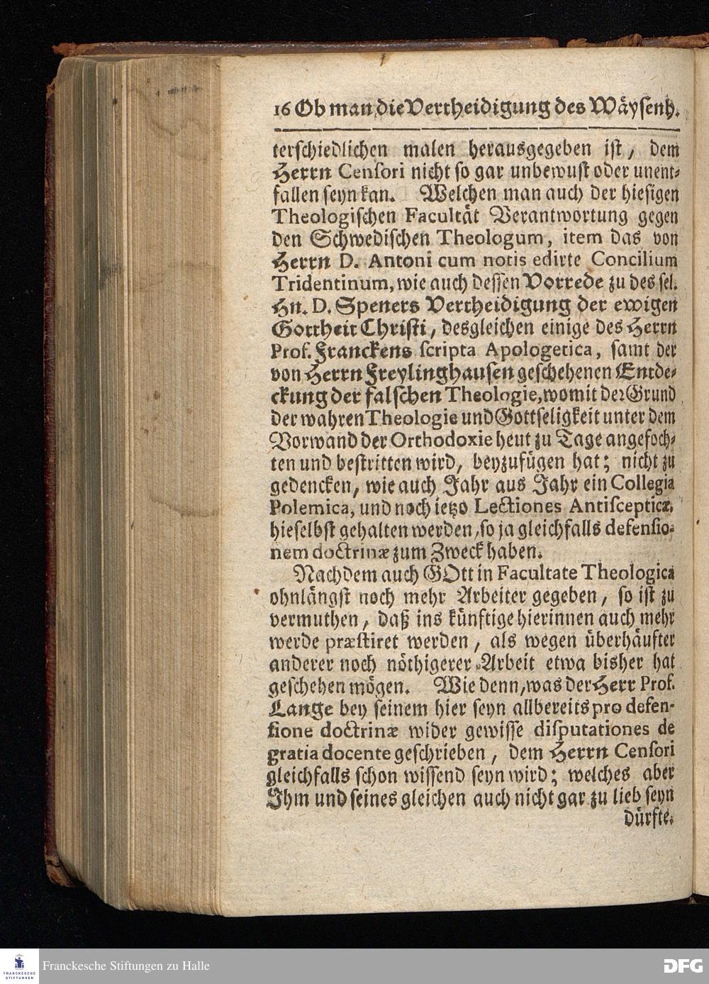 Segens=volle Fußstapfen des noch lebenden und waltenden liebrei=│chen und getreuen GOttes, Zur Beschämung des Unglaubens und Stärckung des Glaubens, entdecket durch eine wahrhafte und umständliche Nachricht von dem Wäysen=Hause und übrigen Anstalten zu Glaucha vor Halle; Welche Im Jahr 1701. zum Druck befördert, ietzo aber zum dritten mal ediret, und bis auf gegenwärtiges Jahr fortgesetzet von August Hermann Francken, S.Theol.Prof.und Past. HALLE, in Verlegung des Wäysen=Hauses, MDCCIX.