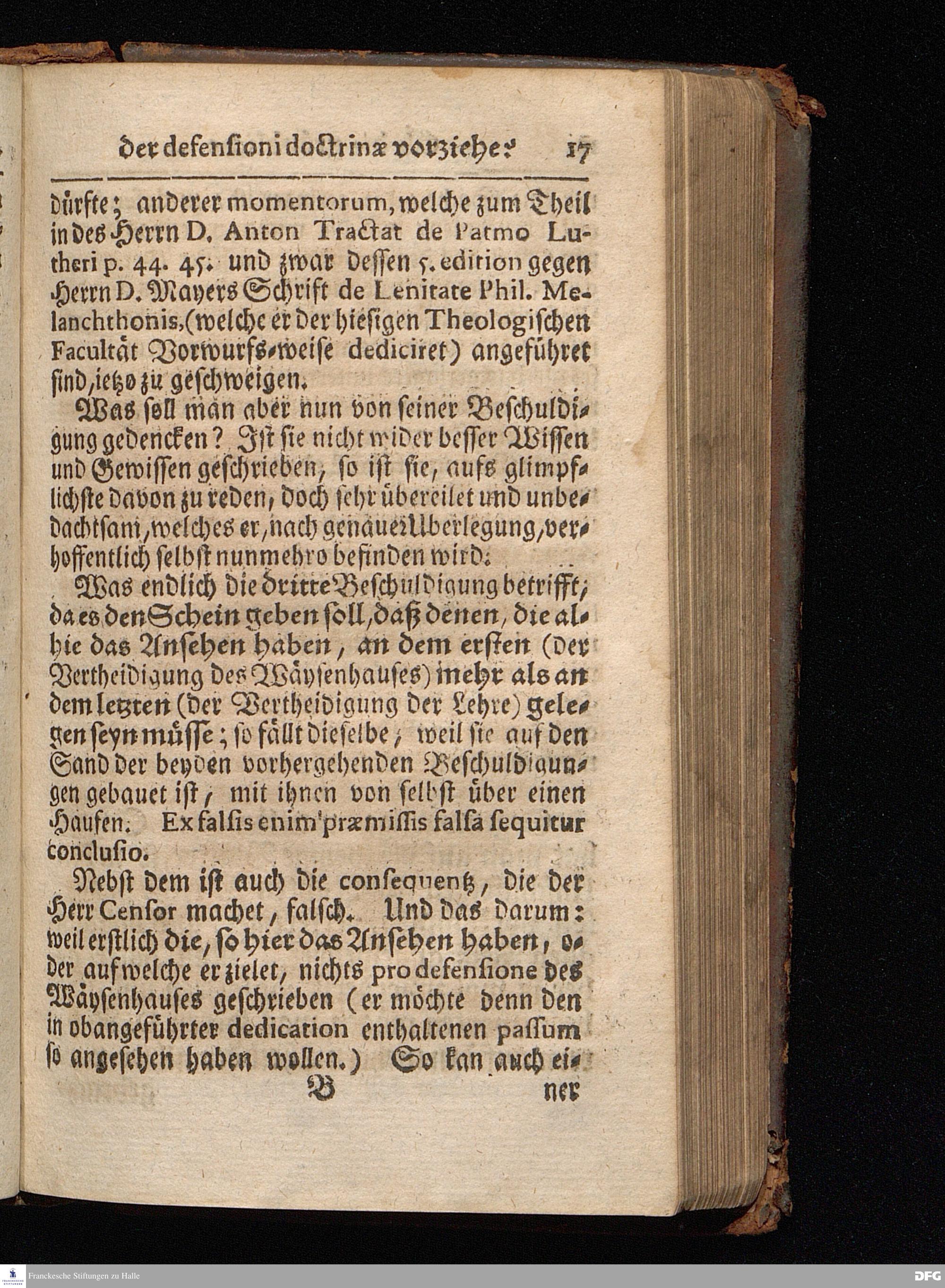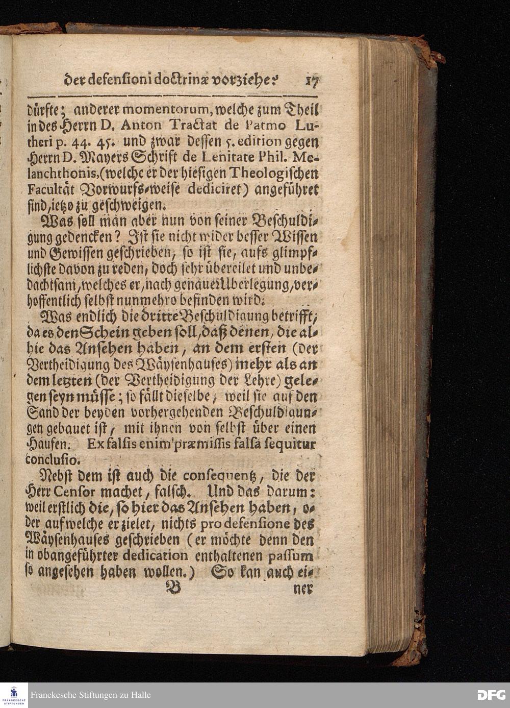Segens=volle Fußstapfen des noch lebenden und waltenden liebrei=│chen und getreuen GOttes, Zur Beschämung des Unglaubens und Stärckung des Glaubens, entdecket durch eine wahrhafte und umständliche Nachricht von dem Wäysen=Hause und übrigen Anstalten zu Glaucha vor Halle; Welche Im Jahr 1701. zum Druck befördert, ietzo aber zum dritten mal ediret, und bis auf gegenwärtiges Jahr fortgesetzet von August Hermann Francken, S.Theol.Prof.und Past. HALLE, in Verlegung des Wäysen=Hauses, MDCCIX.