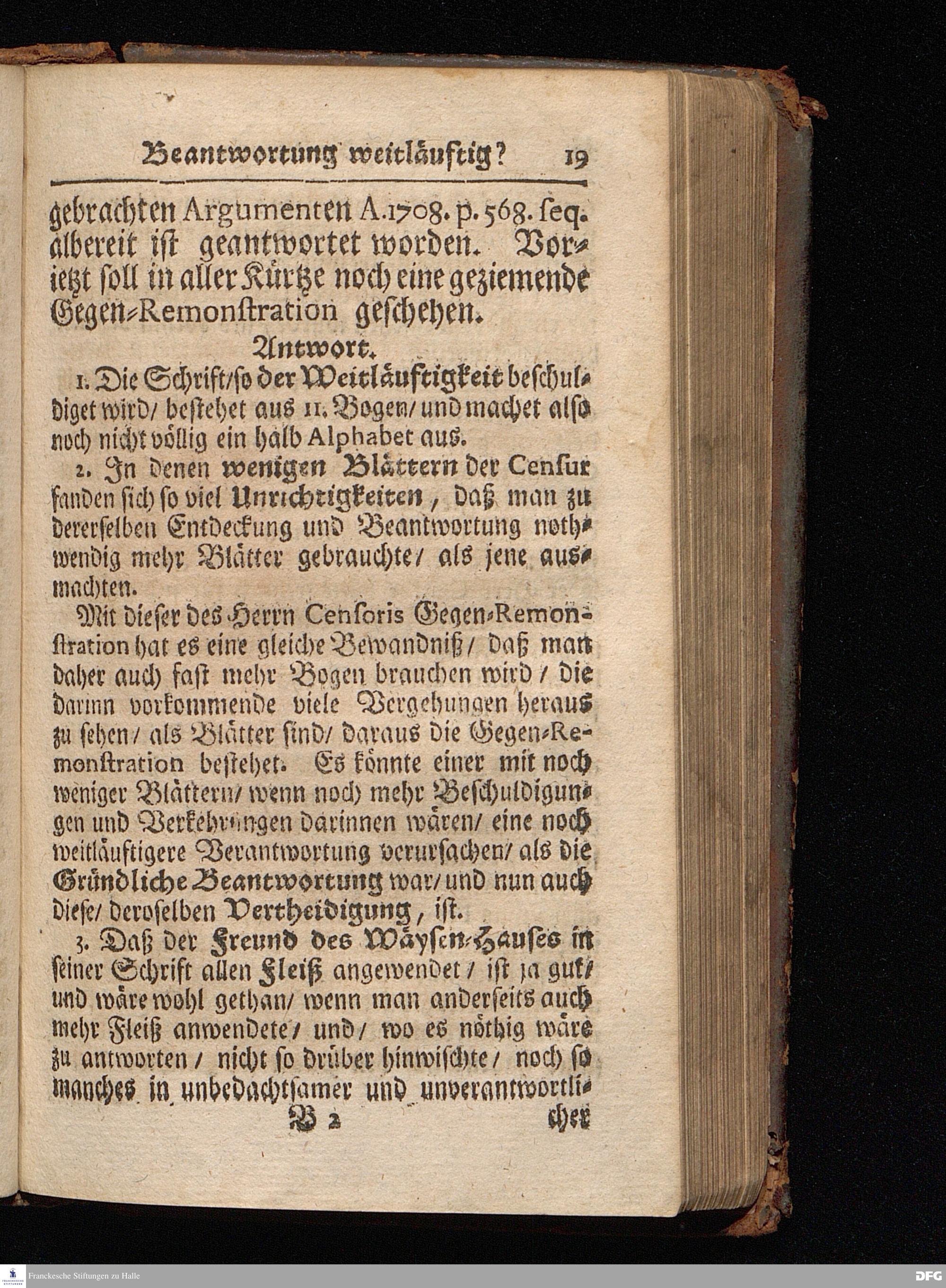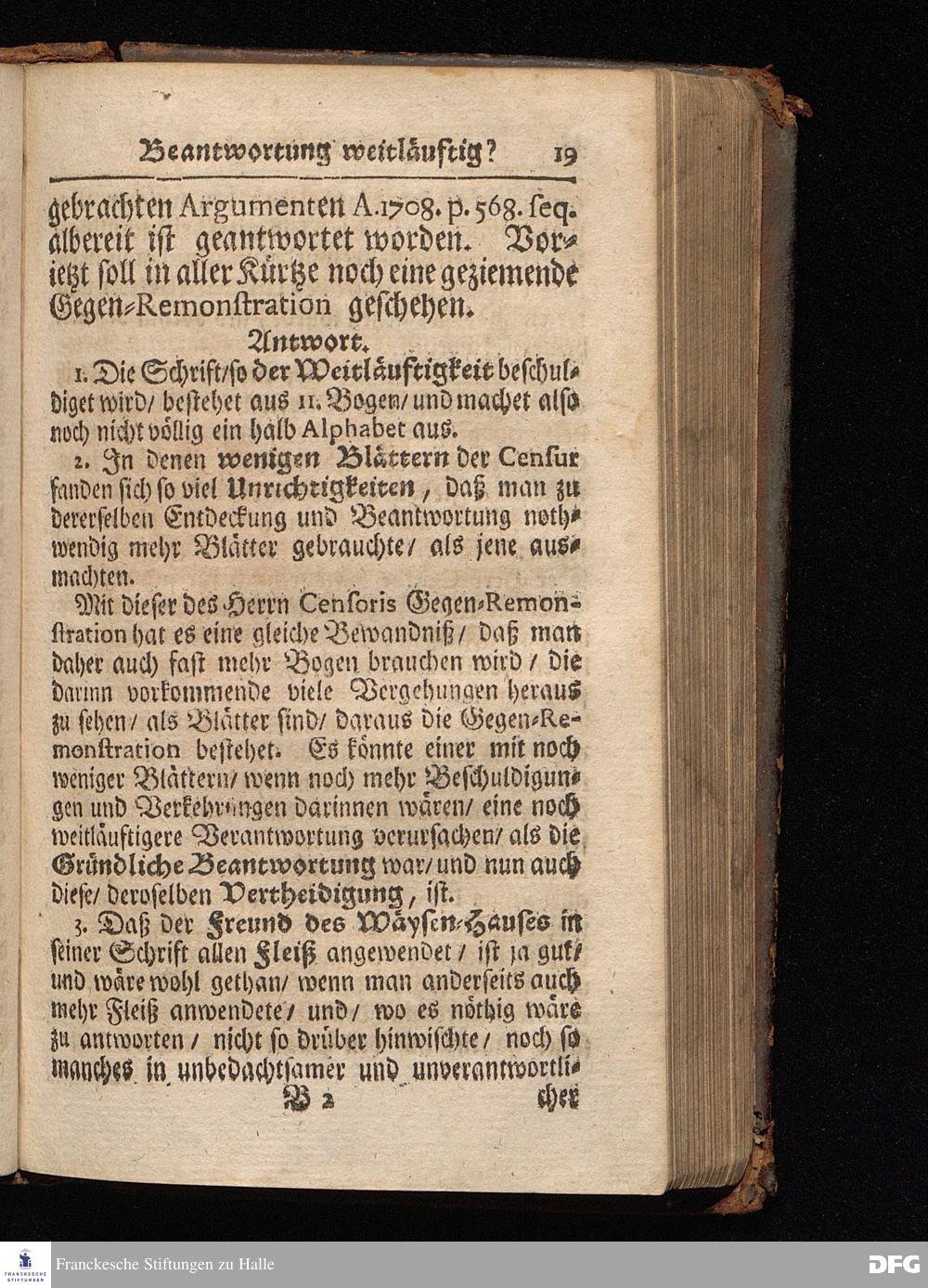 Segens=volle Fußstapfen des noch lebenden und waltenden liebrei=│chen und getreuen GOttes, Zur Beschämung des Unglaubens und Stärckung des Glaubens, entdecket durch eine wahrhafte und umständliche Nachricht von dem Wäysen=Hause und übrigen Anstalten zu Glaucha vor Halle; Welche Im Jahr 1701. zum Druck befördert, ietzo aber zum dritten mal ediret, und bis auf gegenwärtiges Jahr fortgesetzet von August Hermann Francken, S.Theol.Prof.und Past. HALLE, in Verlegung des Wäysen=Hauses, MDCCIX.