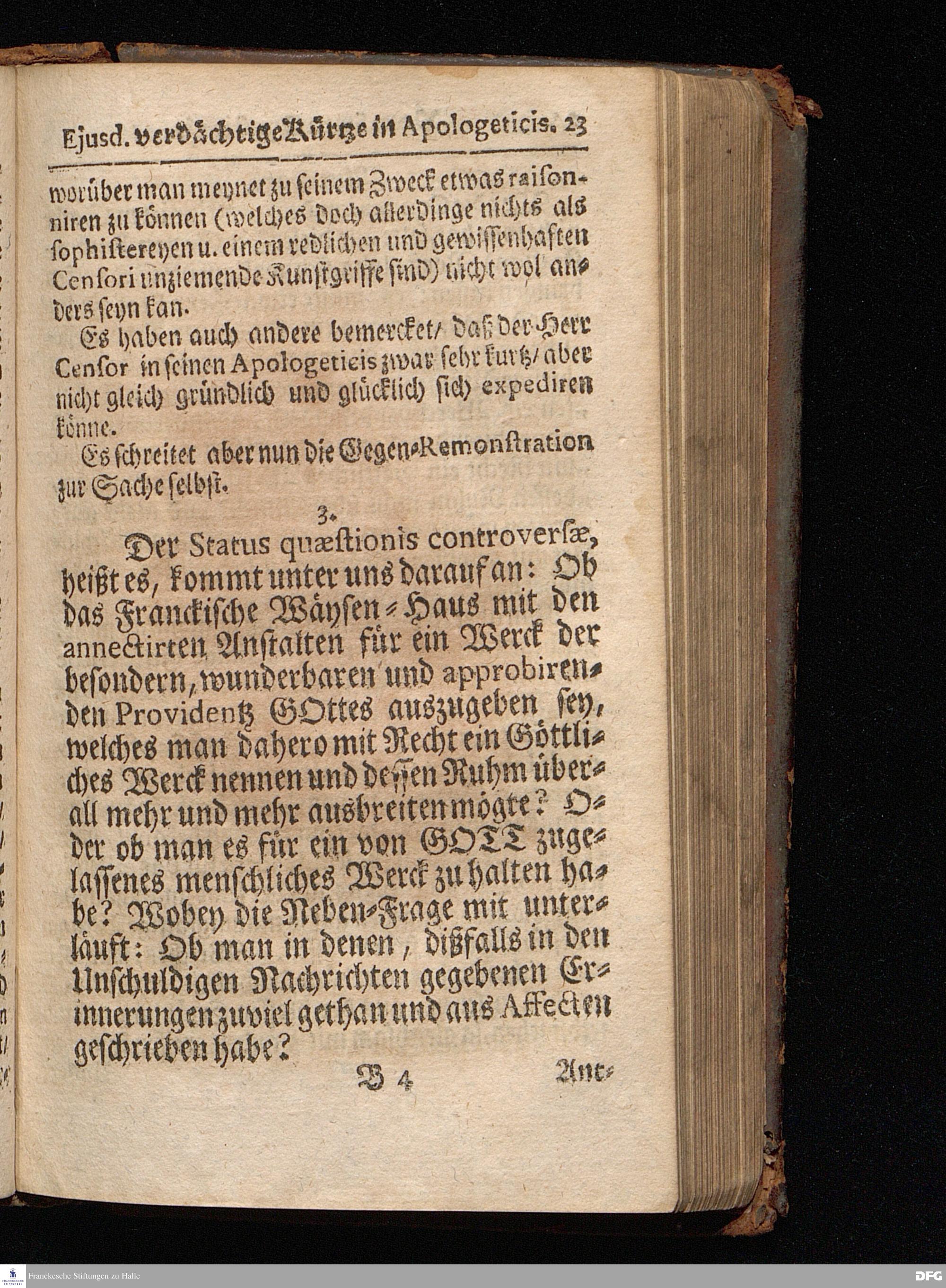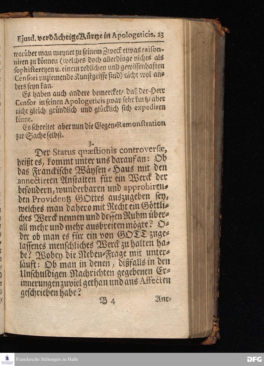 Segens=volle Fußstapfen des noch lebenden und waltenden liebrei=│chen und getreuen GOttes, Zur Beschämung des Unglaubens und Stärckung des Glaubens, entdecket durch eine wahrhafte und umständliche Nachricht von dem Wäysen=Hause und übrigen Anstalten zu Glaucha vor Halle; Welche Im Jahr 1701. zum Druck befördert, ietzo aber zum dritten mal ediret, und bis auf gegenwärtiges Jahr fortgesetzet von August Hermann Francken, S.Theol.Prof.und Past. HALLE, in Verlegung des Wäysen=Hauses, MDCCIX.