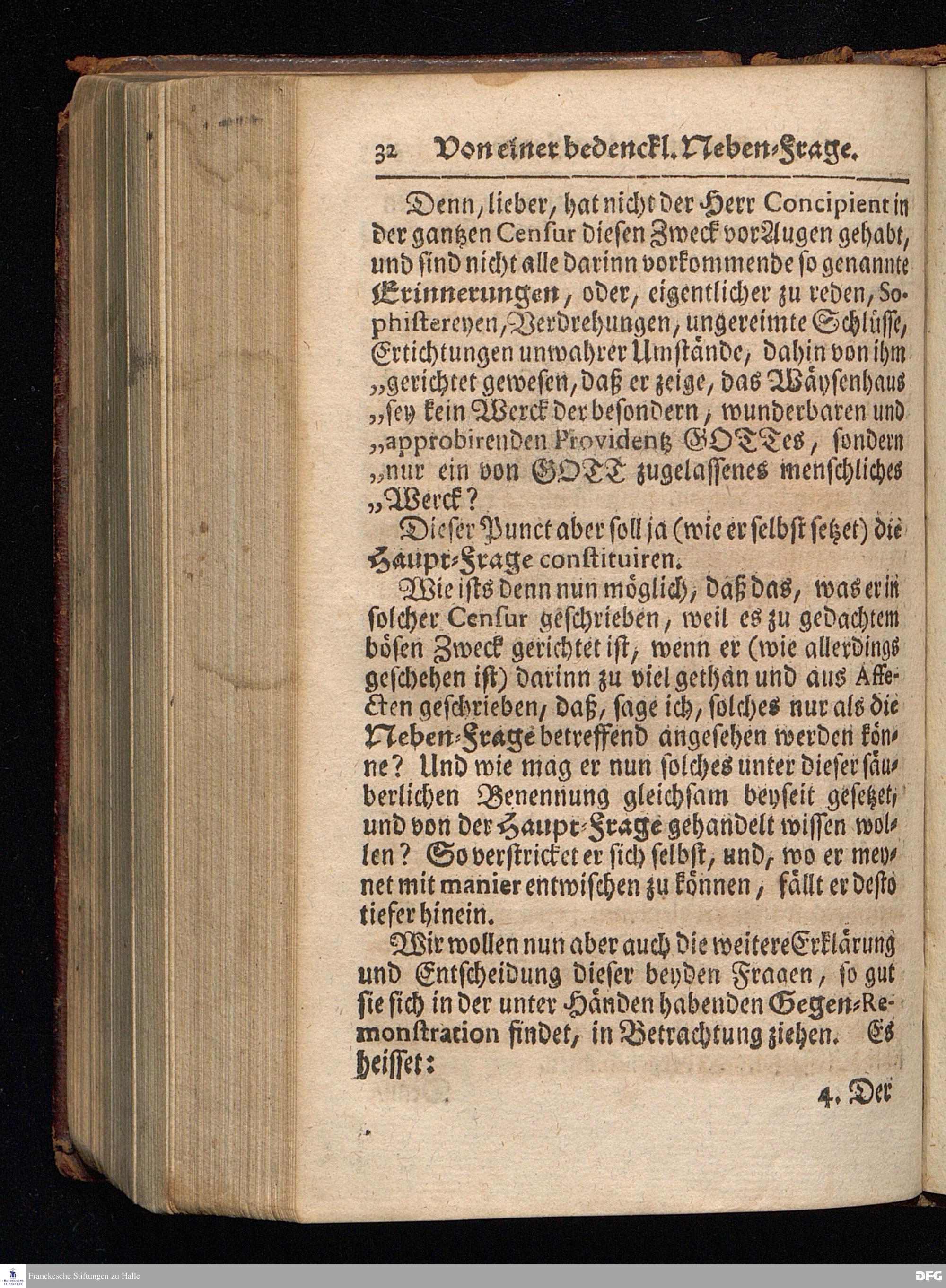 Segens=volle Fußstapfen des noch lebenden und waltenden liebrei=│chen und getreuen GOttes, Zur Beschämung des Unglaubens und Stärckung des Glaubens, entdecket durch eine wahrhafte und umständliche Nachricht von dem Wäysen=Hause und übrigen Anstalten zu Glaucha vor Halle; Welche Im Jahr 1701. zum Druck befördert, ietzo aber zum dritten mal ediret, und bis auf gegenwärtiges Jahr fortgesetzet von August Hermann Francken, S.Theol.Prof.und Past. HALLE, in Verlegung des Wäysen=Hauses, MDCCIX.