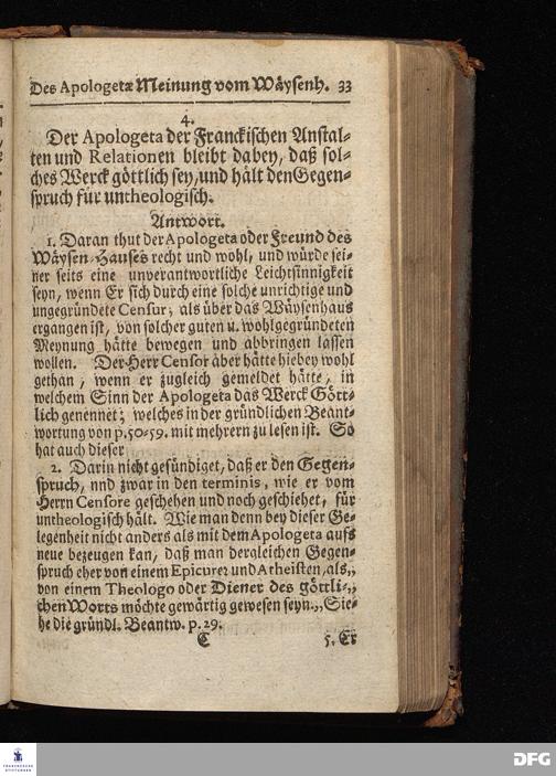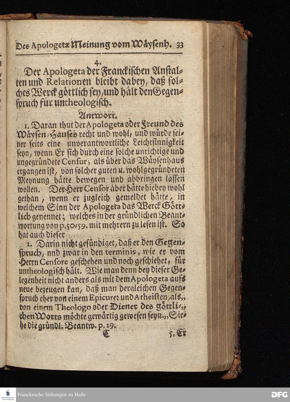 Segens=volle Fußstapfen des noch lebenden und waltenden liebrei=│chen und getreuen GOttes, Zur Beschämung des Unglaubens und Stärckung des Glaubens, entdecket durch eine wahrhafte und umständliche Nachricht von dem Wäysen=Hause und übrigen Anstalten zu Glaucha vor Halle; Welche Im Jahr 1701. zum Druck befördert, ietzo aber zum dritten mal ediret, und bis auf gegenwärtiges Jahr fortgesetzet von August Hermann Francken, S.Theol.Prof.und Past. HALLE, in Verlegung des Wäysen=Hauses, MDCCIX.