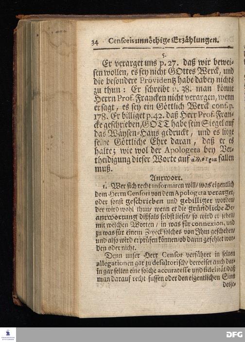 Segens=volle Fußstapfen des noch lebenden und waltenden liebrei=│chen und getreuen GOttes, Zur Beschämung des Unglaubens und Stärckung des Glaubens, entdecket durch eine wahrhafte und umständliche Nachricht von dem Wäysen=Hause und übrigen Anstalten zu Glaucha vor Halle; Welche Im Jahr 1701. zum Druck befördert, ietzo aber zum dritten mal ediret, und bis auf gegenwärtiges Jahr fortgesetzet von August Hermann Francken, S.Theol.Prof.und Past. HALLE, in Verlegung des Wäysen=Hauses, MDCCIX.