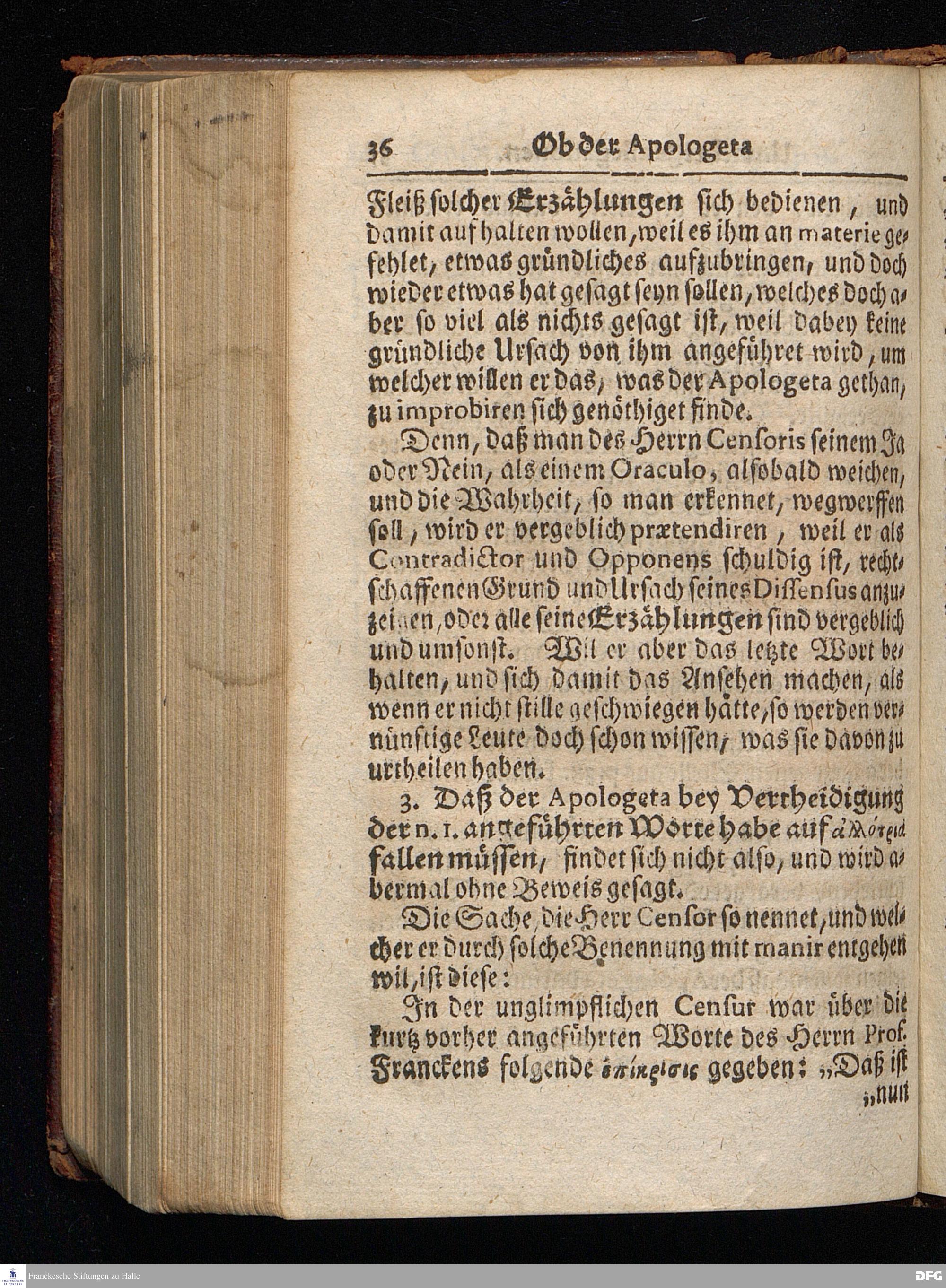 Segens=volle Fußstapfen des noch lebenden und waltenden liebrei=│chen und getreuen GOttes, Zur Beschämung des Unglaubens und Stärckung des Glaubens, entdecket durch eine wahrhafte und umständliche Nachricht von dem Wäysen=Hause und übrigen Anstalten zu Glaucha vor Halle; Welche Im Jahr 1701. zum Druck befördert, ietzo aber zum dritten mal ediret, und bis auf gegenwärtiges Jahr fortgesetzet von August Hermann Francken, S.Theol.Prof.und Past. HALLE, in Verlegung des Wäysen=Hauses, MDCCIX.