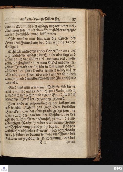 Segens=volle Fußstapfen des noch lebenden und waltenden liebrei=│chen und getreuen GOttes, Zur Beschämung des Unglaubens und Stärckung des Glaubens, entdecket durch eine wahrhafte und umständliche Nachricht von dem Wäysen=Hause und übrigen Anstalten zu Glaucha vor Halle; Welche Im Jahr 1701. zum Druck befördert, ietzo aber zum dritten mal ediret, und bis auf gegenwärtiges Jahr fortgesetzet von August Hermann Francken, S.Theol.Prof.und Past. HALLE, in Verlegung des Wäysen=Hauses, MDCCIX.