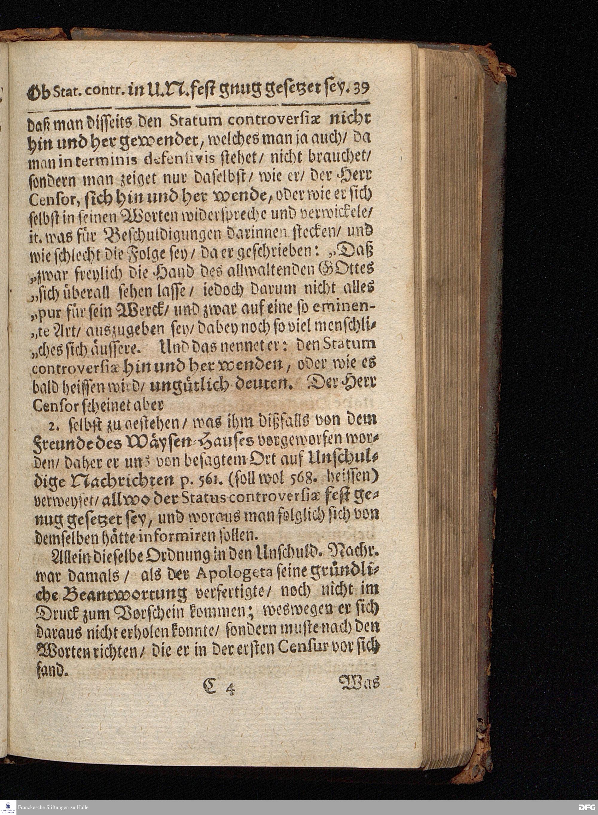 Segens=volle Fußstapfen des noch lebenden und waltenden liebrei=│chen und getreuen GOttes, Zur Beschämung des Unglaubens und Stärckung des Glaubens, entdecket durch eine wahrhafte und umständliche Nachricht von dem Wäysen=Hause und übrigen Anstalten zu Glaucha vor Halle; Welche Im Jahr 1701. zum Druck befördert, ietzo aber zum dritten mal ediret, und bis auf gegenwärtiges Jahr fortgesetzet von August Hermann Francken, S.Theol.Prof.und Past. HALLE, in Verlegung des Wäysen=Hauses, MDCCIX.