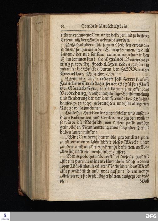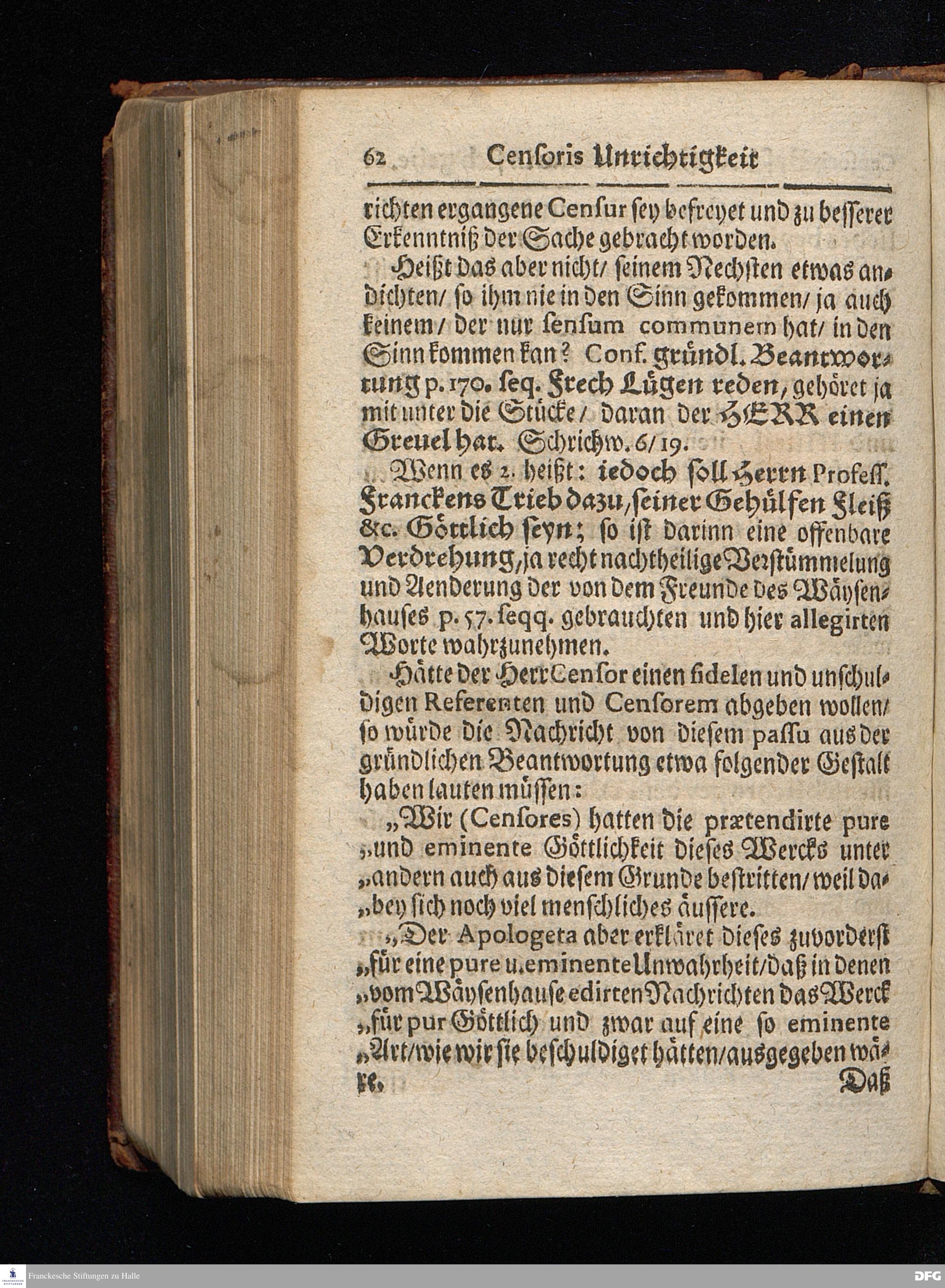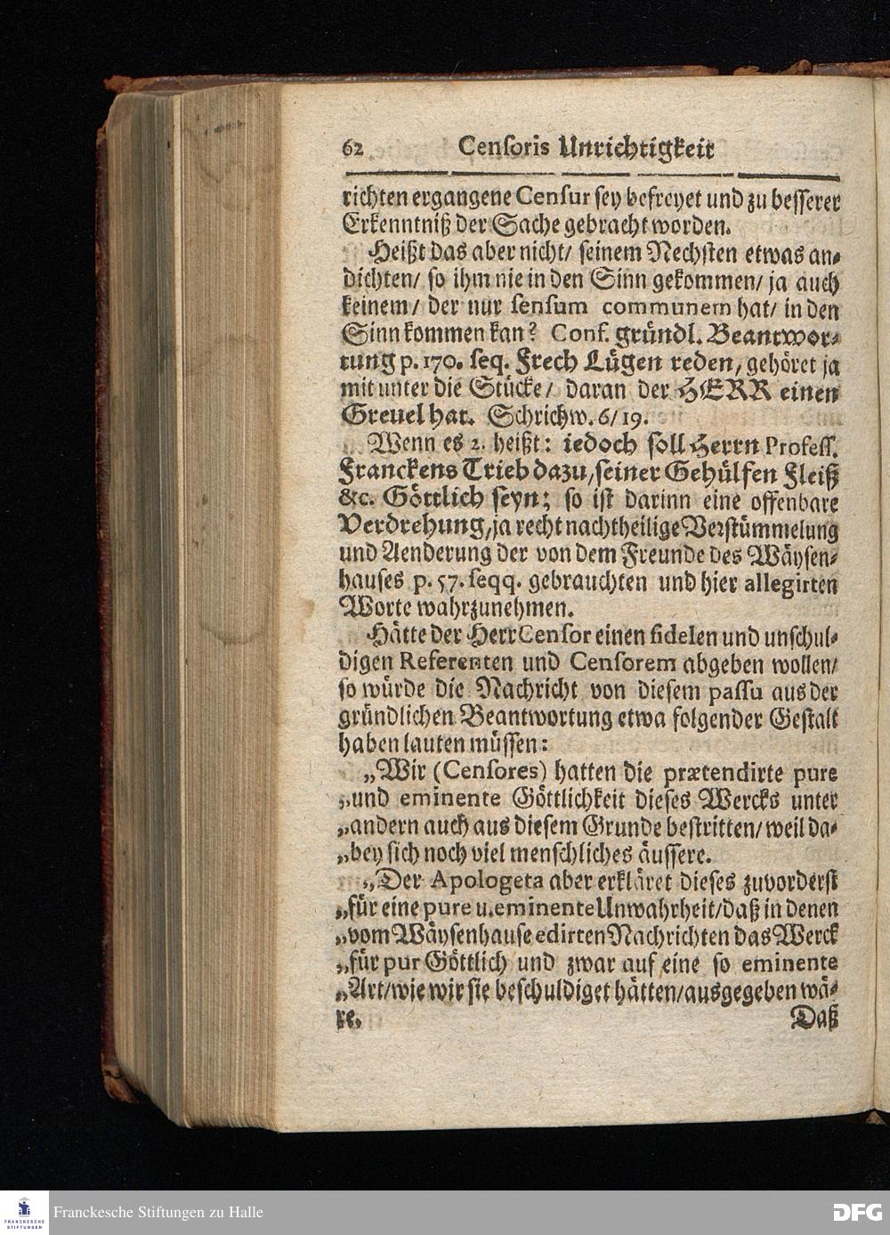 Segens=volle Fußstapfen des noch lebenden und waltenden liebrei=│chen und getreuen GOttes, Zur Beschämung des Unglaubens und Stärckung des Glaubens, entdecket durch eine wahrhafte und umständliche Nachricht von dem Wäysen=Hause und übrigen Anstalten zu Glaucha vor Halle; Welche Im Jahr 1701. zum Druck befördert, ietzo aber zum dritten mal ediret, und bis auf gegenwärtiges Jahr fortgesetzet von August Hermann Francken, S.Theol.Prof.und Past. HALLE, in Verlegung des Wäysen=Hauses, MDCCIX.