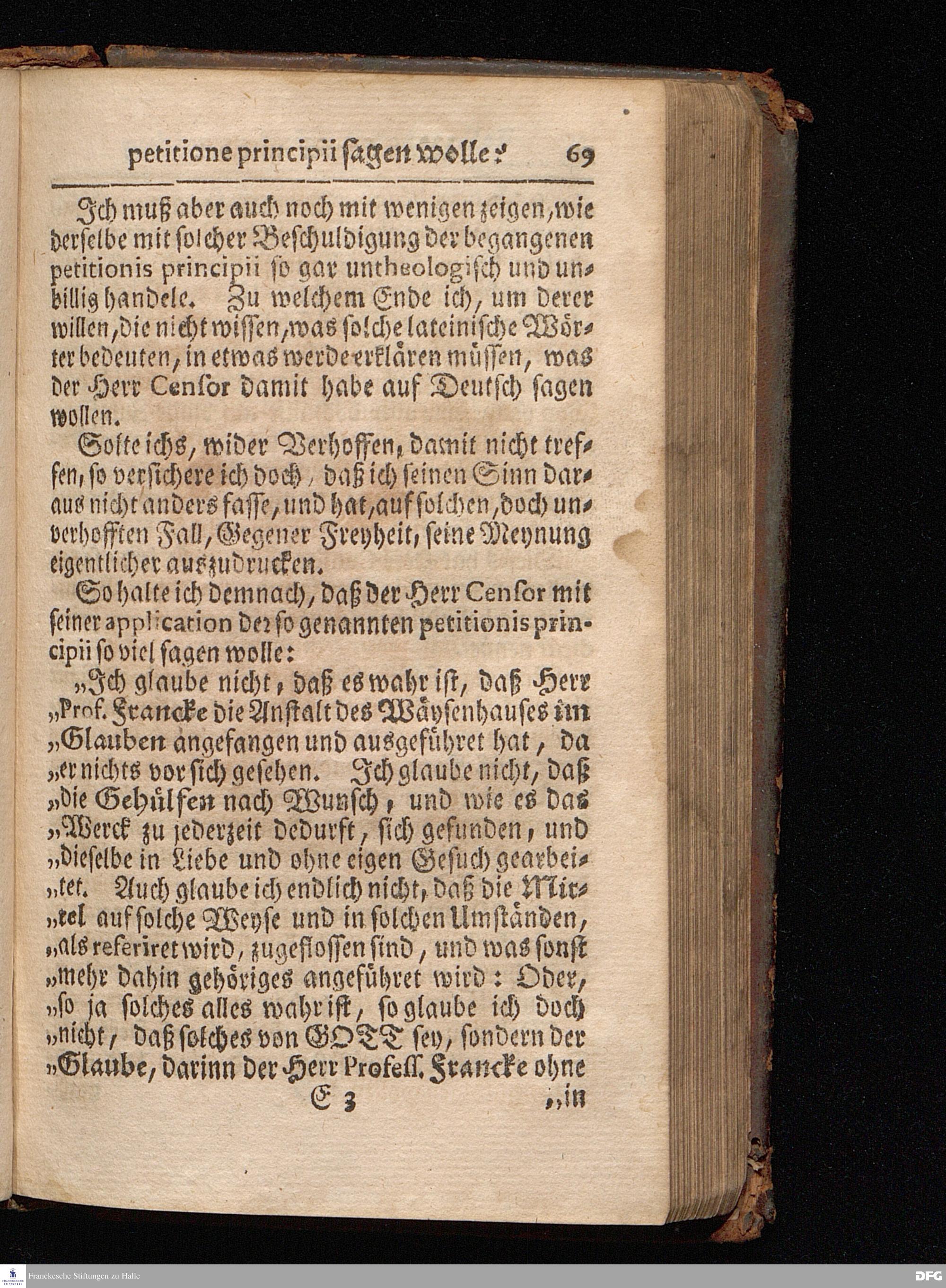 Segens=volle Fußstapfen des noch lebenden und waltenden liebrei=│chen und getreuen GOttes, Zur Beschämung des Unglaubens und Stärckung des Glaubens, entdecket durch eine wahrhafte und umständliche Nachricht von dem Wäysen=Hause und übrigen Anstalten zu Glaucha vor Halle; Welche Im Jahr 1701. zum Druck befördert, ietzo aber zum dritten mal ediret, und bis auf gegenwärtiges Jahr fortgesetzet von August Hermann Francken, S.Theol.Prof.und Past. HALLE, in Verlegung des Wäysen=Hauses, MDCCIX.