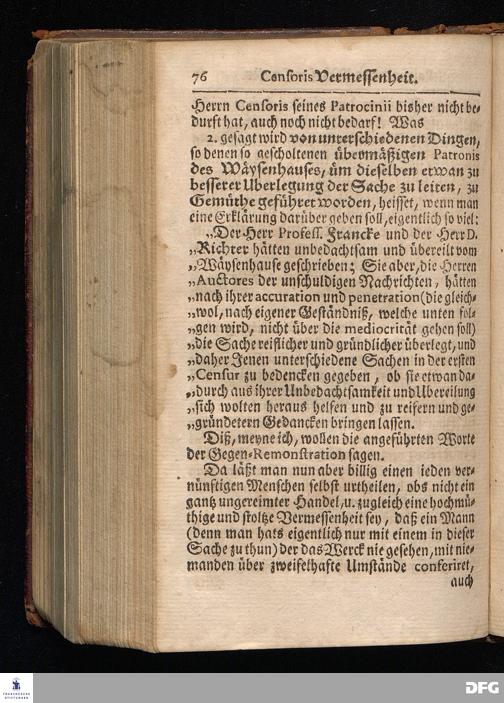 Segens=volle Fußstapfen des noch lebenden und waltenden liebrei=│chen und getreuen GOttes, Zur Beschämung des Unglaubens und Stärckung des Glaubens, entdecket durch eine wahrhafte und umständliche Nachricht von dem Wäysen=Hause und übrigen Anstalten zu Glaucha vor Halle; Welche Im Jahr 1701. zum Druck befördert, ietzo aber zum dritten mal ediret, und bis auf gegenwärtiges Jahr fortgesetzet von August Hermann Francken, S.Theol.Prof.und Past. HALLE, in Verlegung des Wäysen=Hauses, MDCCIX.