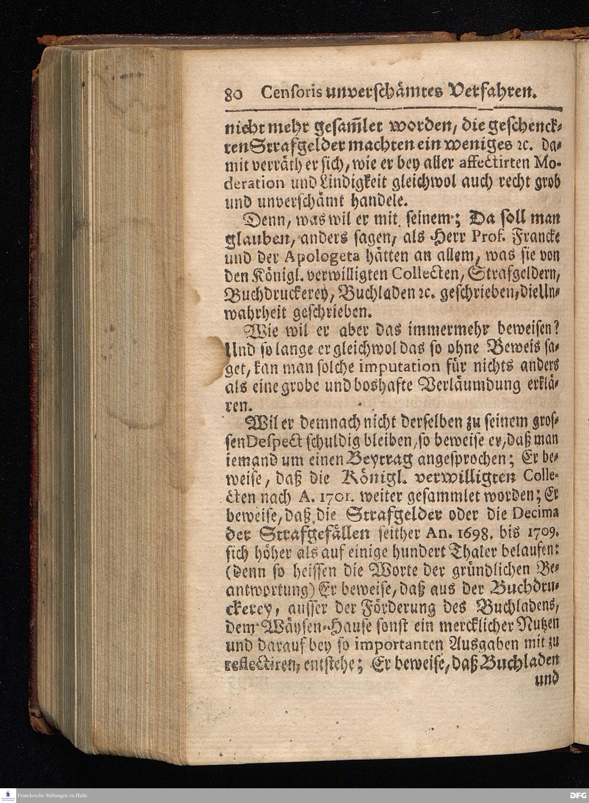 Segens=volle Fußstapfen des noch lebenden und waltenden liebrei=│chen und getreuen GOttes, Zur Beschämung des Unglaubens und Stärckung des Glaubens, entdecket durch eine wahrhafte und umständliche Nachricht von dem Wäysen=Hause und übrigen Anstalten zu Glaucha vor Halle; Welche Im Jahr 1701. zum Druck befördert, ietzo aber zum dritten mal ediret, und bis auf gegenwärtiges Jahr fortgesetzet von August Hermann Francken, S.Theol.Prof.und Past. HALLE, in Verlegung des Wäysen=Hauses, MDCCIX.