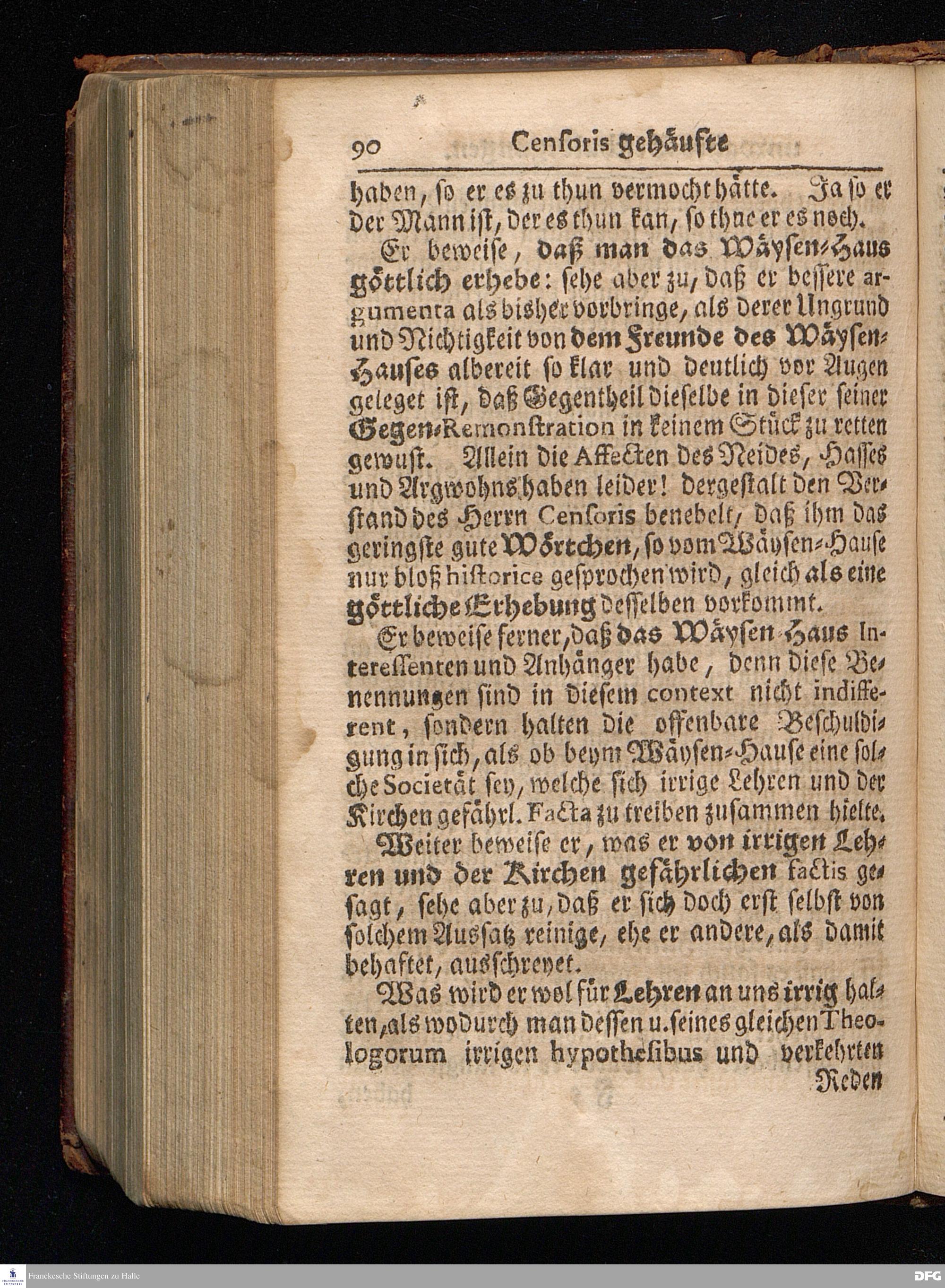 Segens=volle Fußstapfen des noch lebenden und waltenden liebrei=│chen und getreuen GOttes, Zur Beschämung des Unglaubens und Stärckung des Glaubens, entdecket durch eine wahrhafte und umständliche Nachricht von dem Wäysen=Hause und übrigen Anstalten zu Glaucha vor Halle; Welche Im Jahr 1701. zum Druck befördert, ietzo aber zum dritten mal ediret, und bis auf gegenwärtiges Jahr fortgesetzet von August Hermann Francken, S.Theol.Prof.und Past. HALLE, in Verlegung des Wäysen=Hauses, MDCCIX.