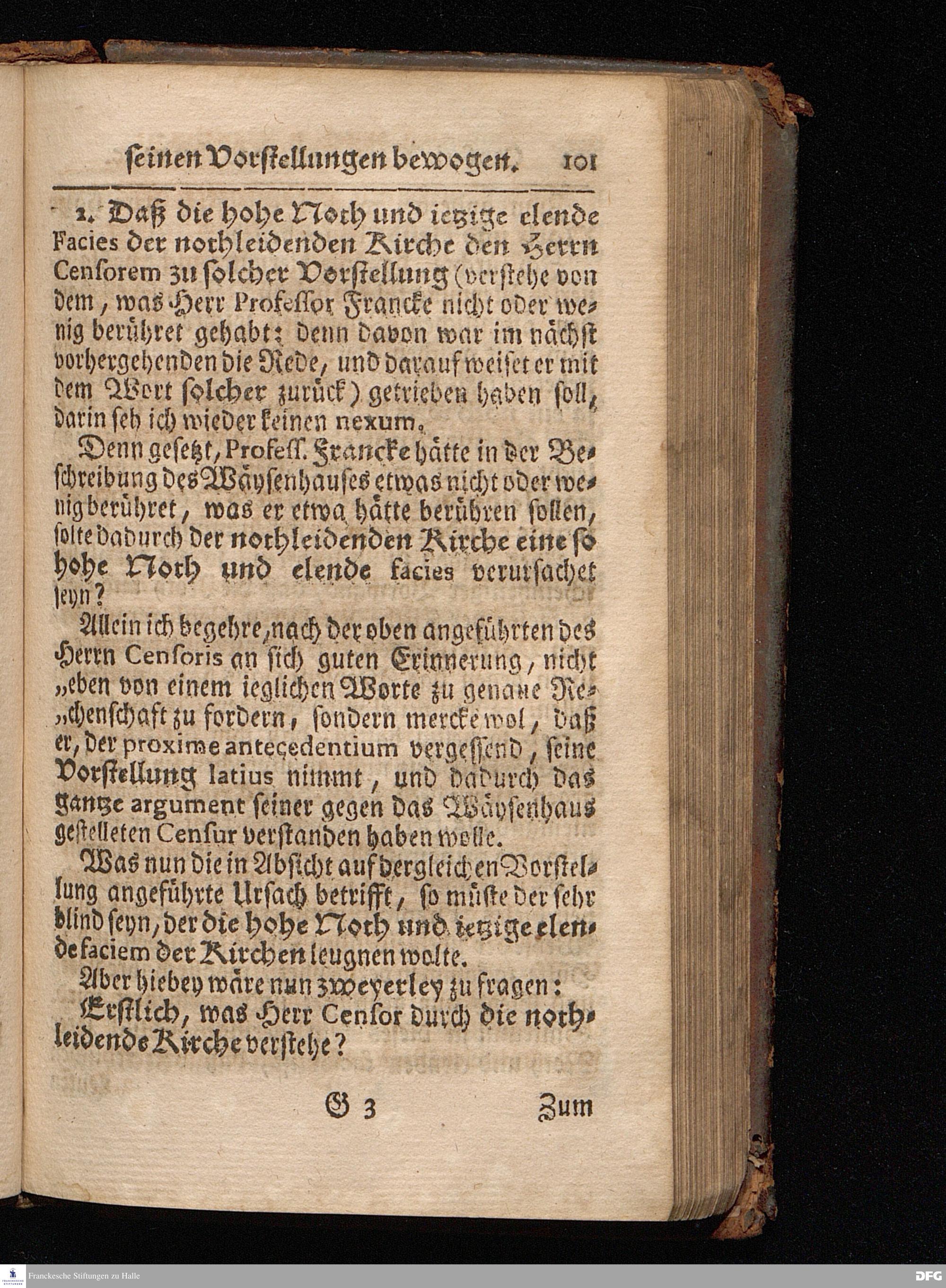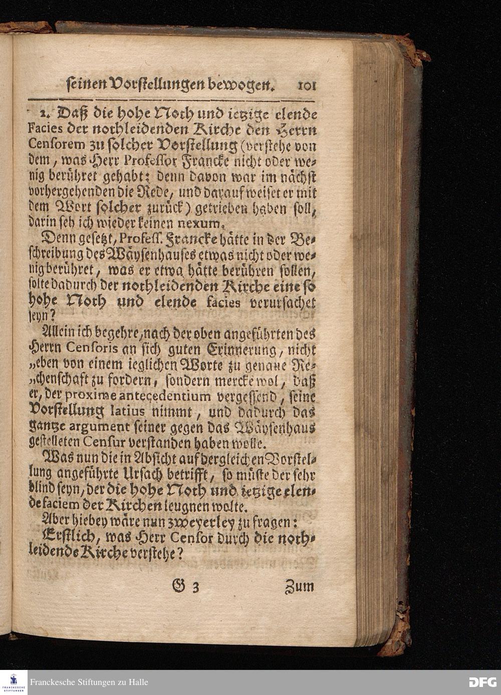 Segens=volle Fußstapfen des noch lebenden und waltenden liebrei=│chen und getreuen GOttes, Zur Beschämung des Unglaubens und Stärckung des Glaubens, entdecket durch eine wahrhafte und umständliche Nachricht von dem Wäysen=Hause und übrigen Anstalten zu Glaucha vor Halle; Welche Im Jahr 1701. zum Druck befördert, ietzo aber zum dritten mal ediret, und bis auf gegenwärtiges Jahr fortgesetzet von August Hermann Francken, S.Theol.Prof.und Past. HALLE, in Verlegung des Wäysen=Hauses, MDCCIX.