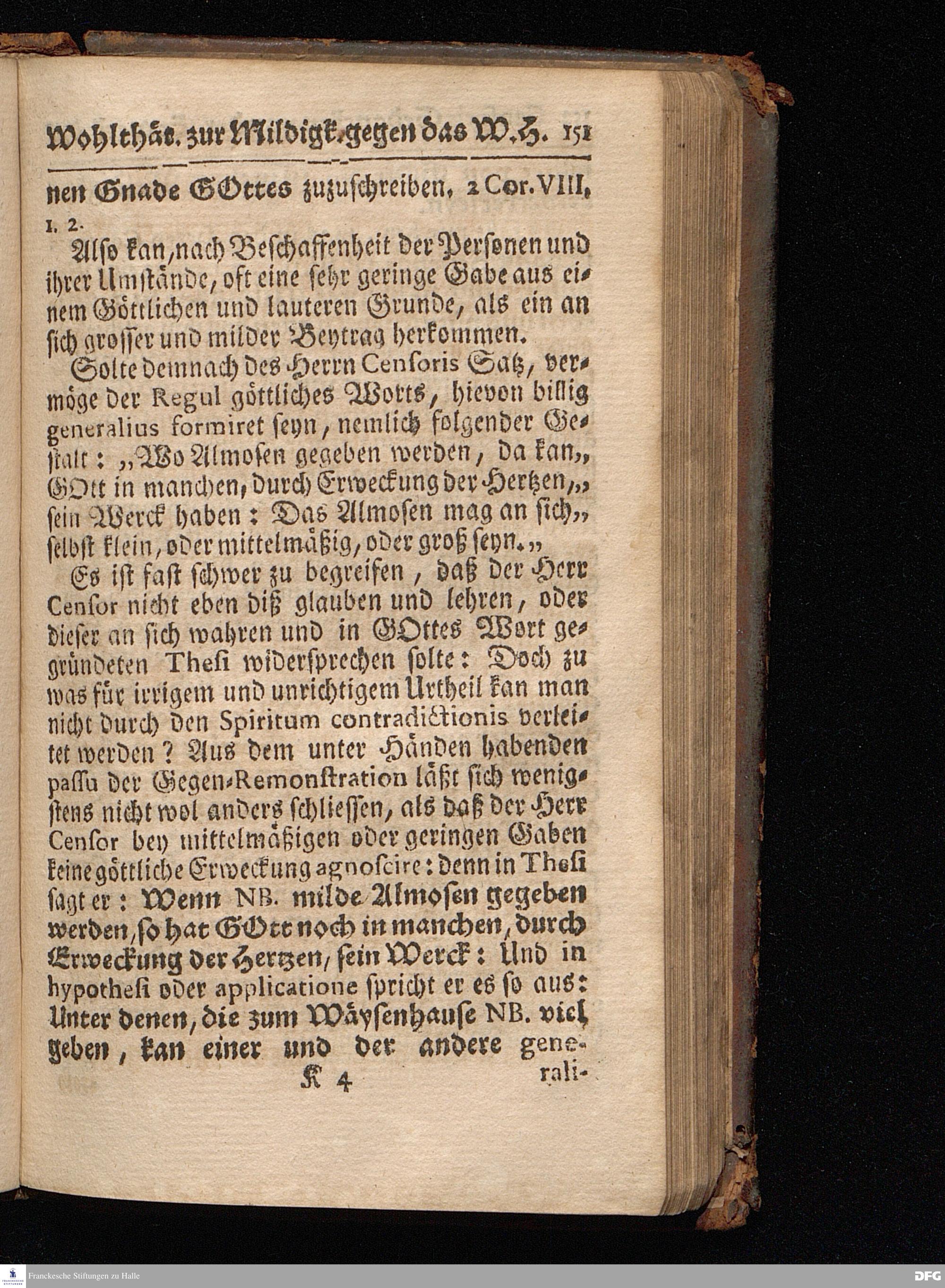 Segens=volle Fußstapfen des noch lebenden und waltenden liebrei=│chen und getreuen GOttes, Zur Beschämung des Unglaubens und Stärckung des Glaubens, entdecket durch eine wahrhafte und umständliche Nachricht von dem Wäysen=Hause und übrigen Anstalten zu Glaucha vor Halle; Welche Im Jahr 1701. zum Druck befördert, ietzo aber zum dritten mal ediret, und bis auf gegenwärtiges Jahr fortgesetzet von August Hermann Francken, S.Theol.Prof.und Past. HALLE, in Verlegung des Wäysen=Hauses, MDCCIX.