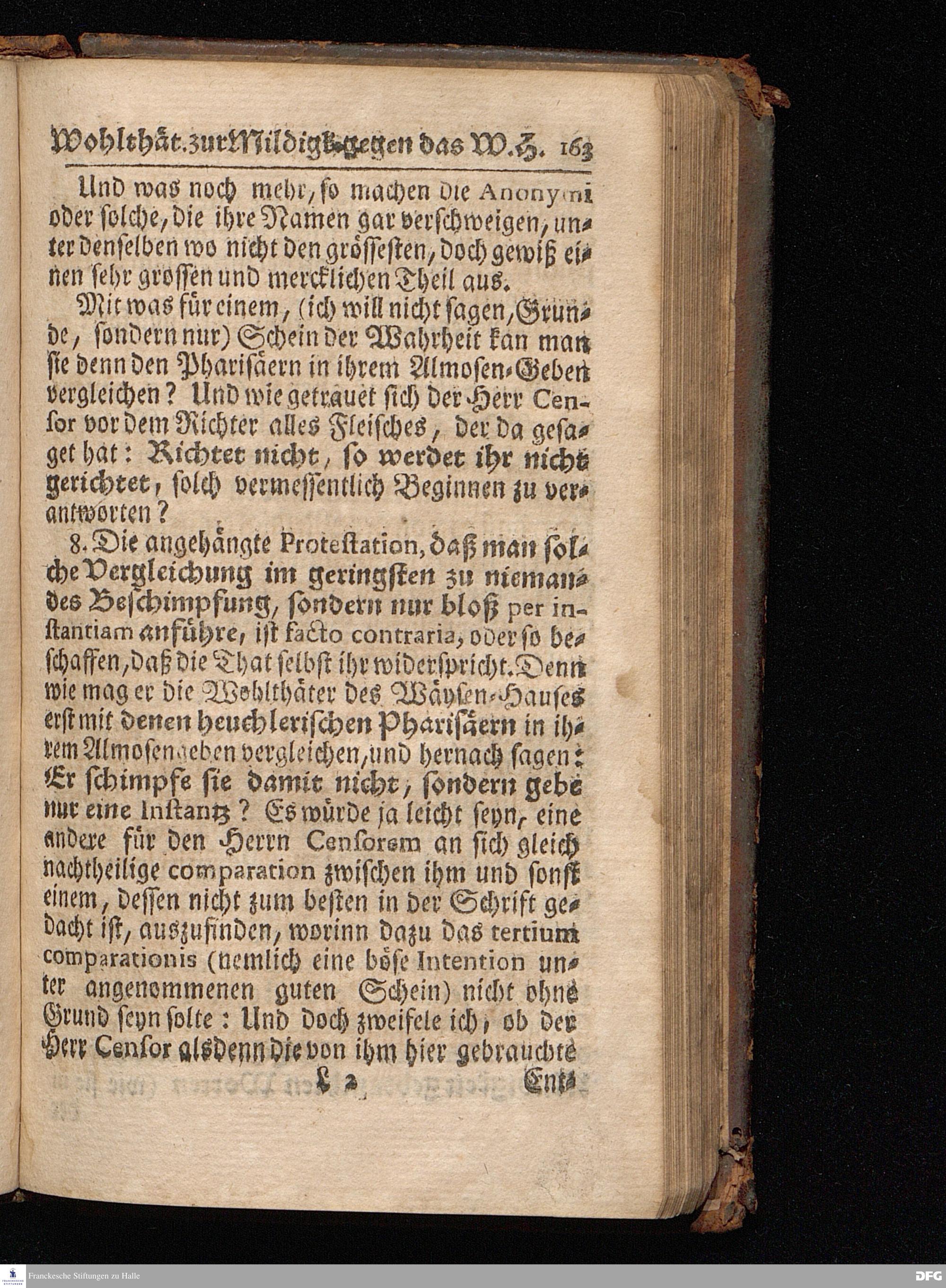 Segens=volle Fußstapfen des noch lebenden und waltenden liebrei=│chen und getreuen GOttes, Zur Beschämung des Unglaubens und Stärckung des Glaubens, entdecket durch eine wahrhafte und umständliche Nachricht von dem Wäysen=Hause und übrigen Anstalten zu Glaucha vor Halle; Welche Im Jahr 1701. zum Druck befördert, ietzo aber zum dritten mal ediret, und bis auf gegenwärtiges Jahr fortgesetzet von August Hermann Francken, S.Theol.Prof.und Past. HALLE, in Verlegung des Wäysen=Hauses, MDCCIX.